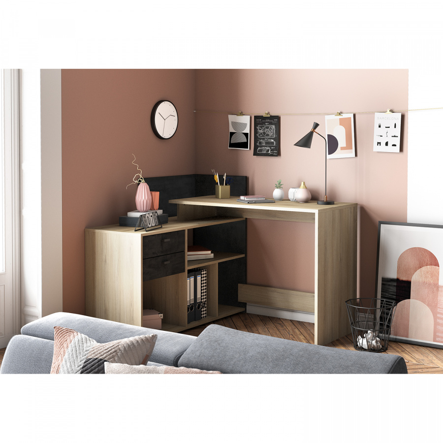 2 zásuvky s kovovými pojezdy, otevřené i uzavřené police