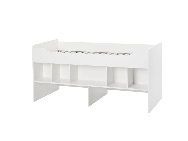 Dětská postel o velikosti 90x200 cm je k dispozici v bílém provedení.