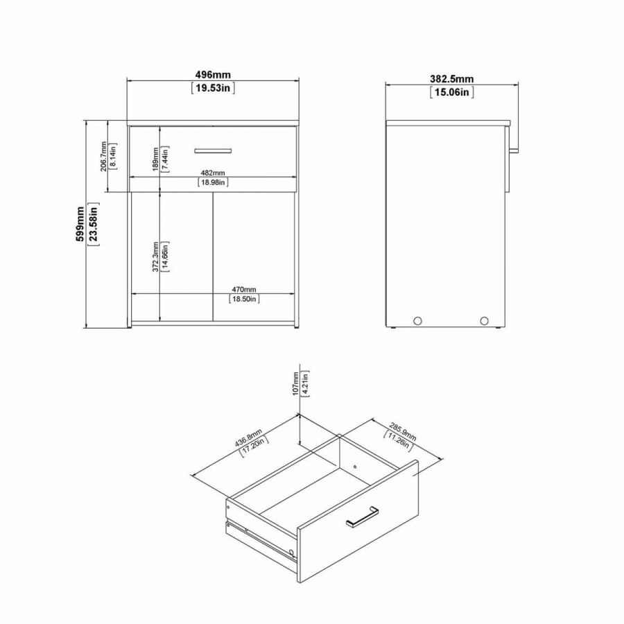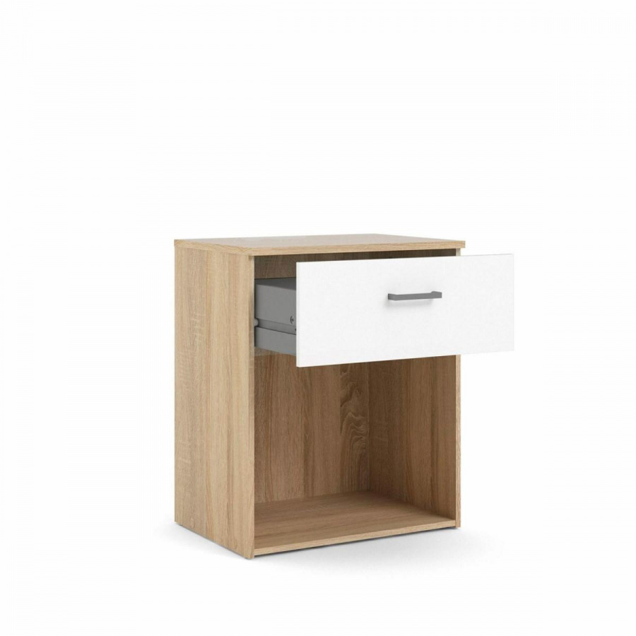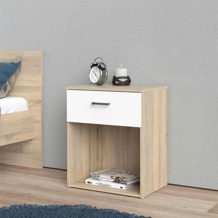 Noční stolek Sid Vám poskytne prostor na lampičku, budík, mobilní telefon a další drobnosti, které potřebujete mít vždy na dosah ruky. Díky praktické zásuvce, budou všechny nezbytné drobnosti schované a ložnice bude stále hezky uklizená a útulná. Stolek je vyrobený z lamina, které se snadno udžuje. Je dodávaný v demontu a součástí balení je montážní návod včetně potřebných spojovacích prvků. Vyobrazené dekorace nejsou v ceně.
