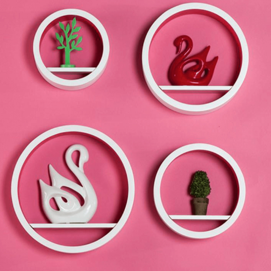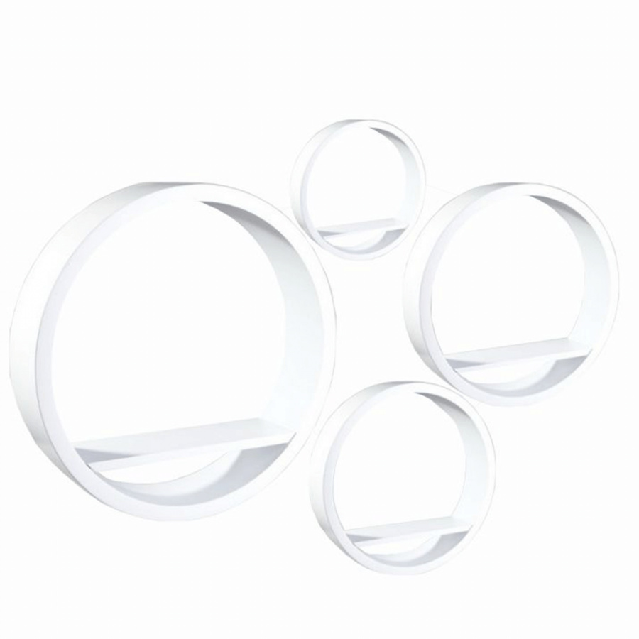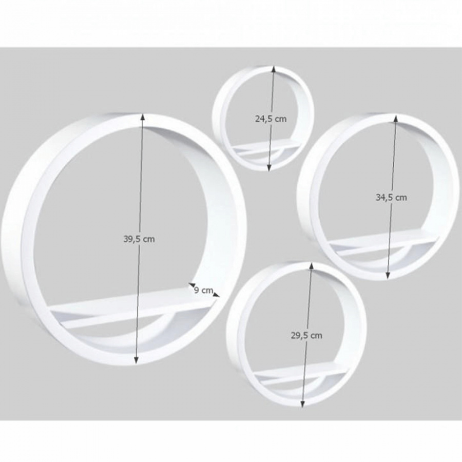sada polic - 4 ks, materiál: MDF, provedení: bílá, rozměry ŠxVxH: 1 - 39,5x39,5x9 cm, 2 - 34,5x34,5x9 cm, 3 - 29,5x29,5x9 cm, 4 - 24,5x24, 5x9 cm. Cena je za 4 ks.