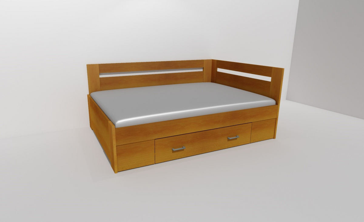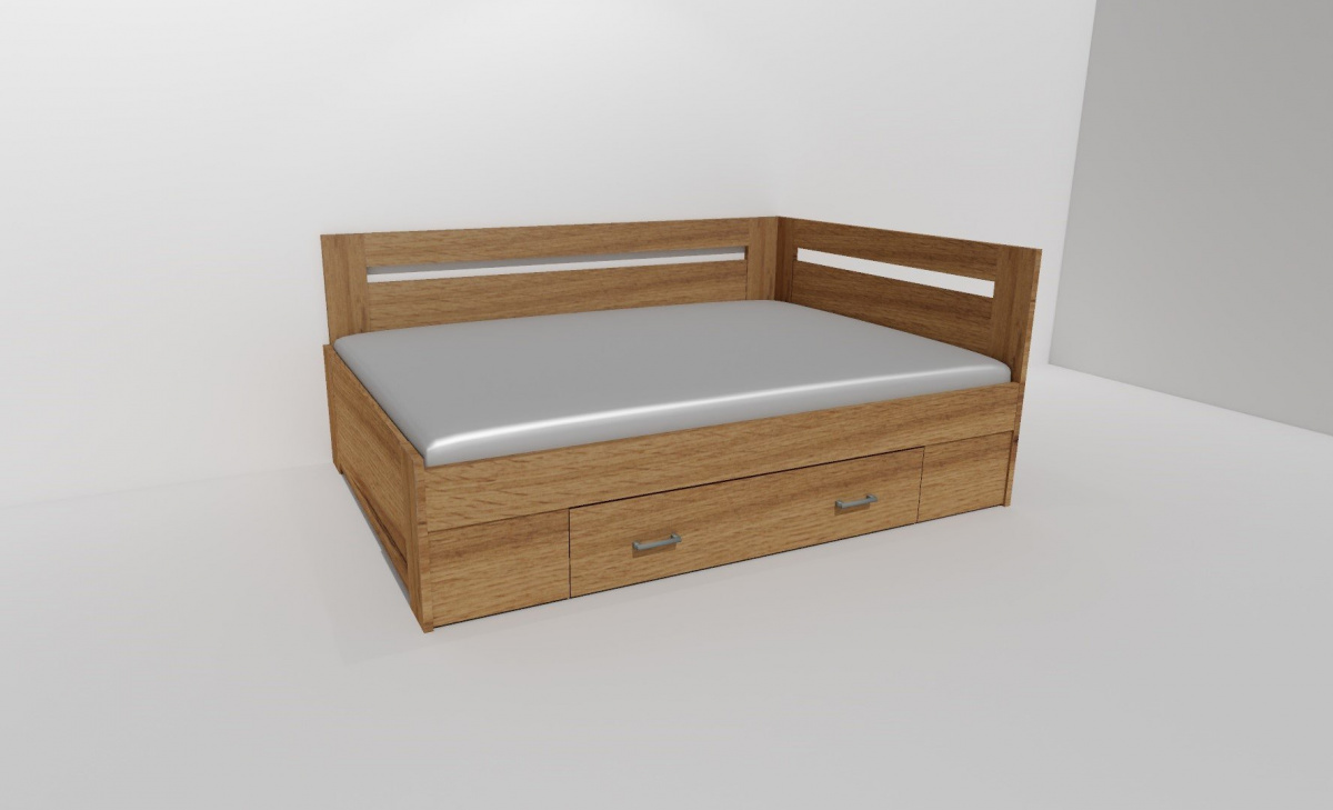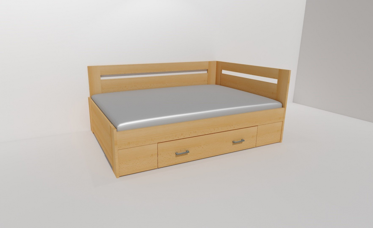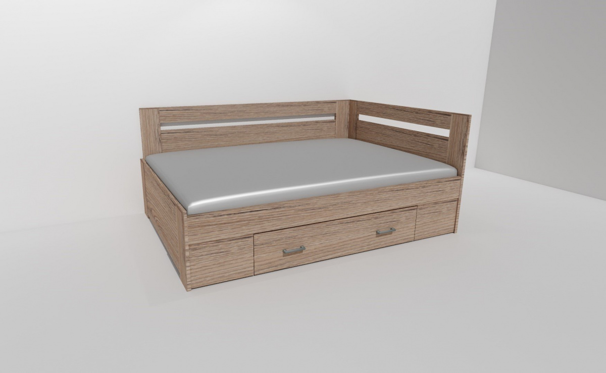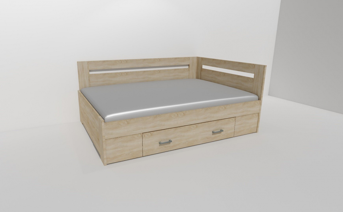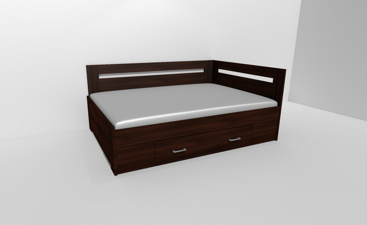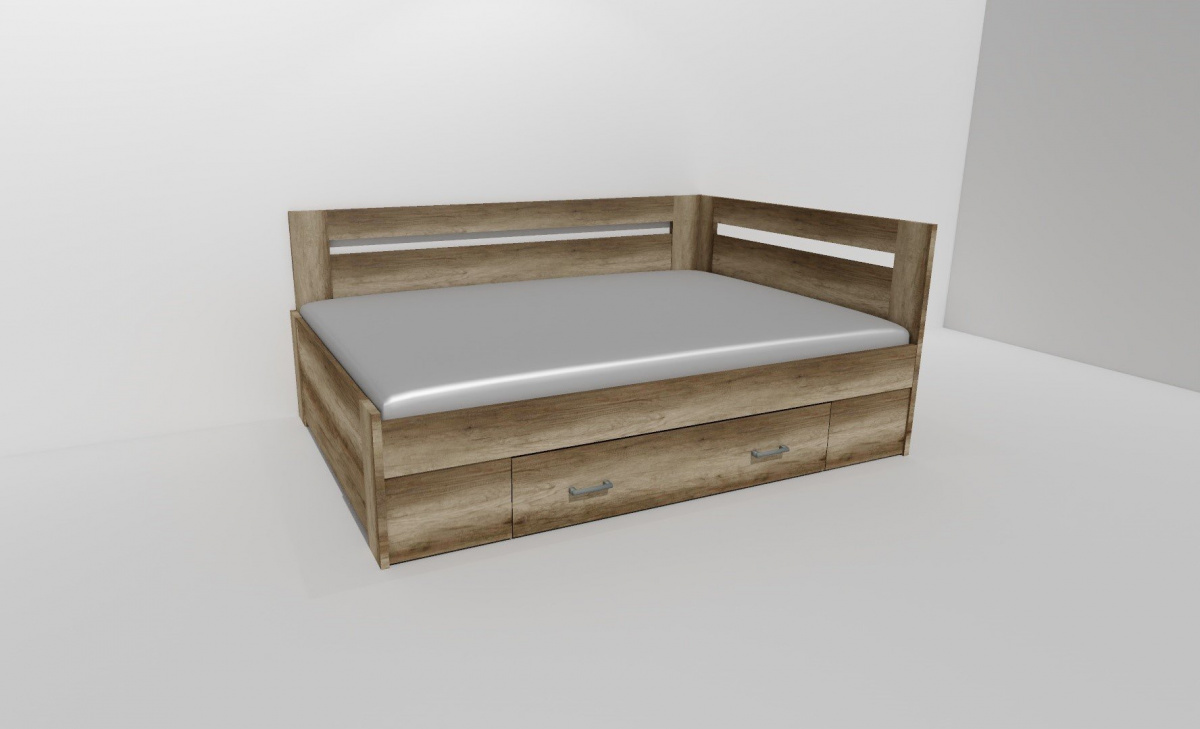 Několik možností provedení a výběr úložných prostor nabízí nespočet variant pro Vaši spokojenost. Vyrobeno z lamina o síle 18 / 25 mm. Výběr akčních dekorů. Kvalitní kování a spojovací materiál je bez použití plastových součástek, vyjma ochranných krytek. Univerzální provedení pravé/levé. Rohové provedení s jedním úložným prostorem nebo se dvěma úložnými prostory. Dvě varianty za jednu cenu. Velký úložný prostor. Partnerská šířka 120 nebo 140 cm. Zvýšená lehací plocha 52 nebo 56 cm. Cena je bez matrace a roštu. Zátěž roštu do 120 kg.