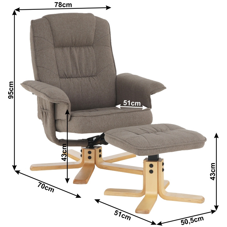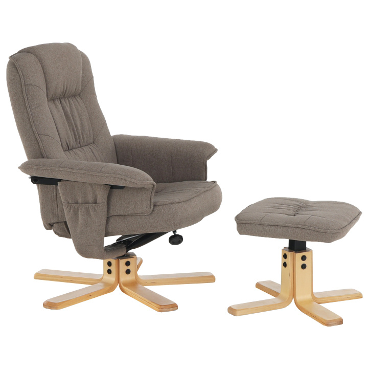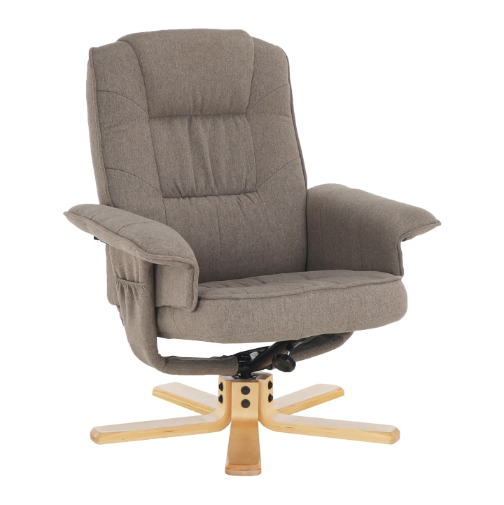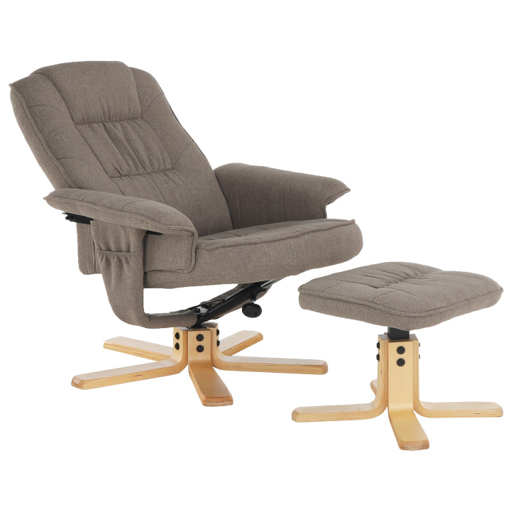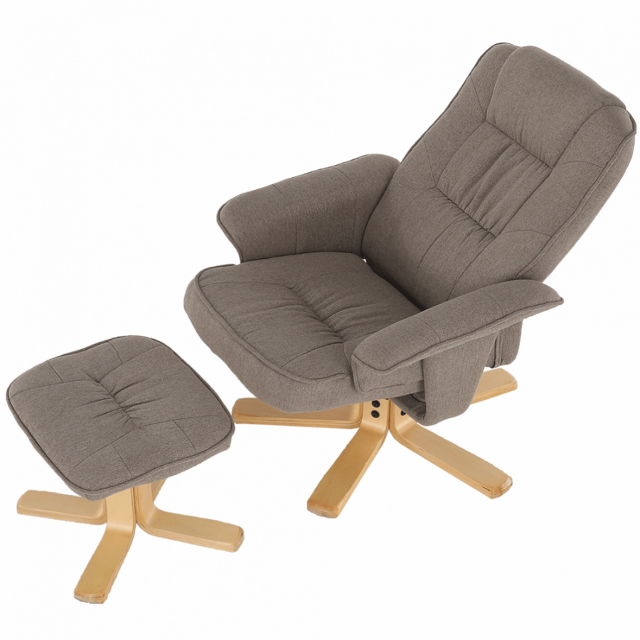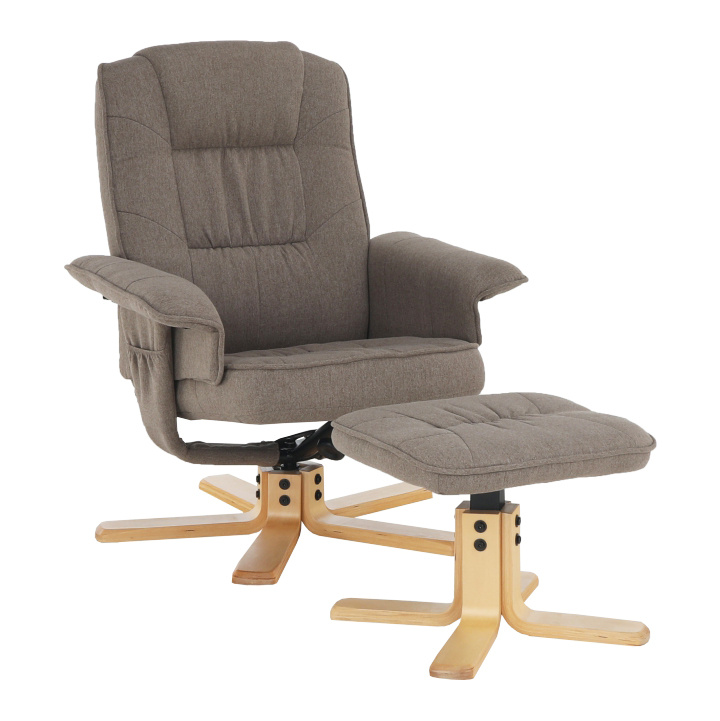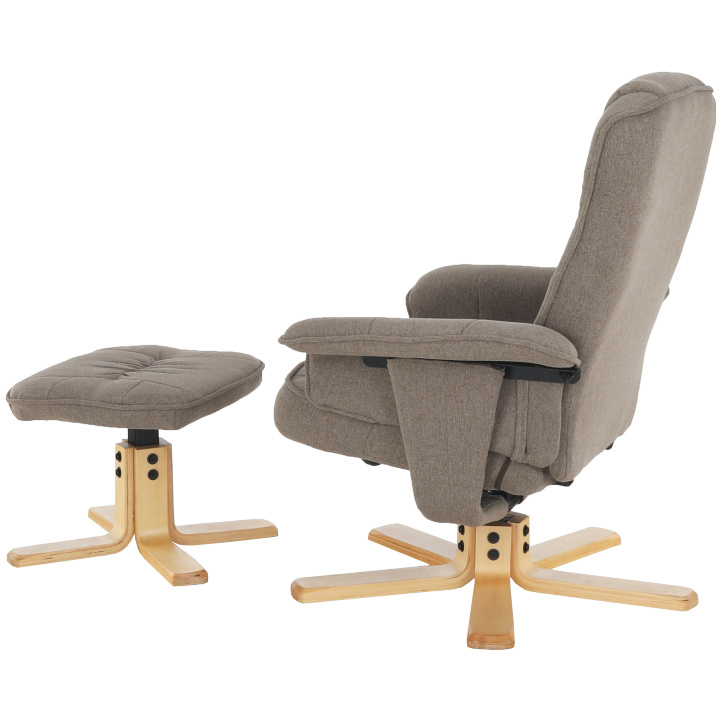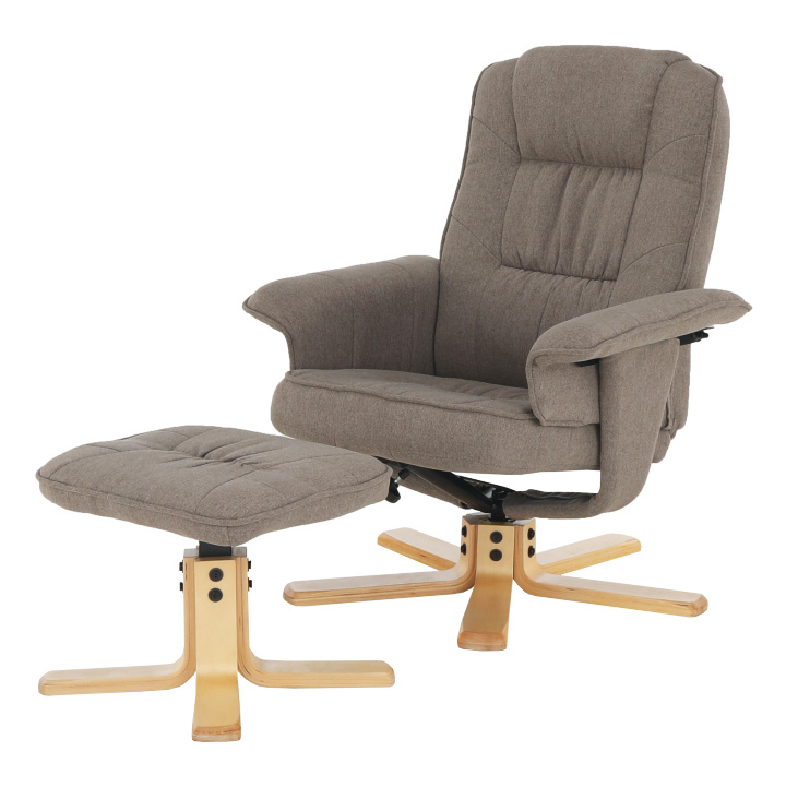 Polohovací, otáčivé relaxační křeslo s podnožkou LERATO v hnědošedá barvě s natural dřevěnou podnožkou