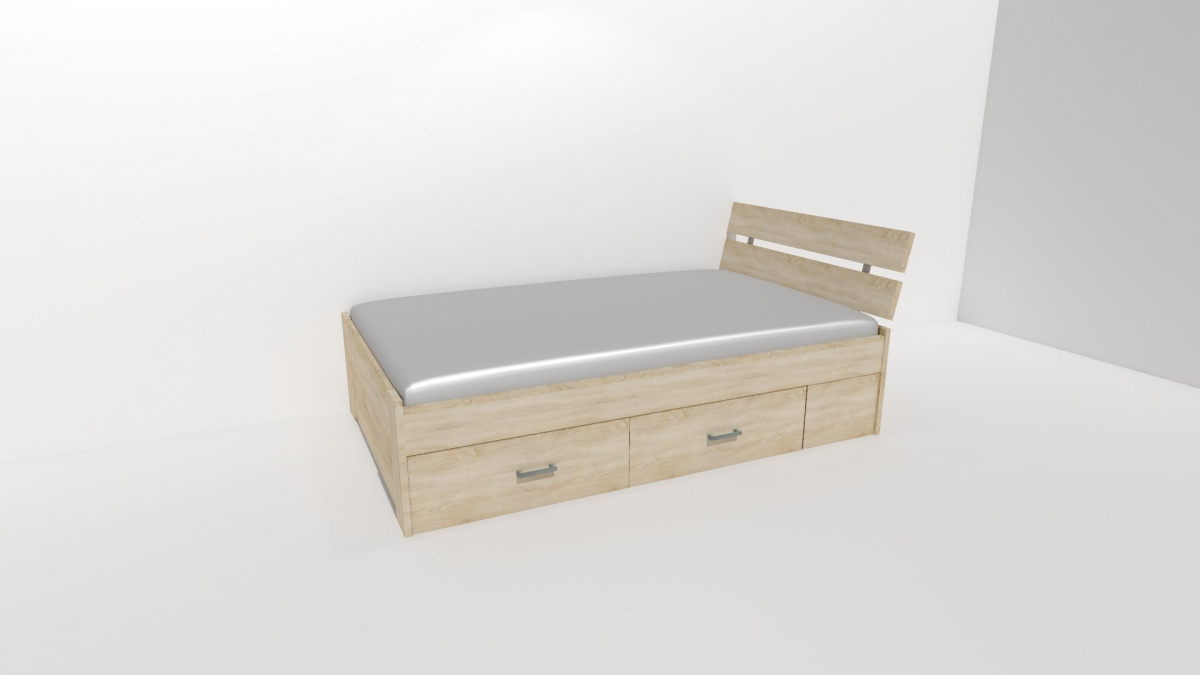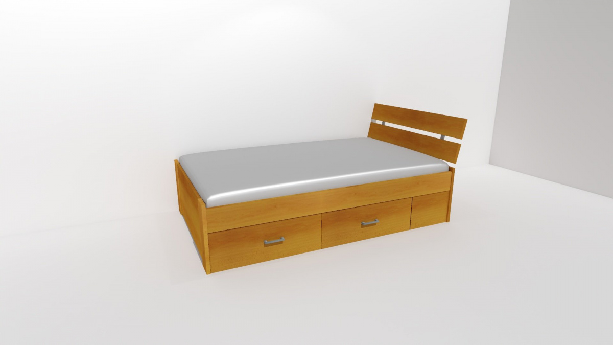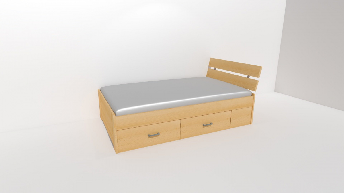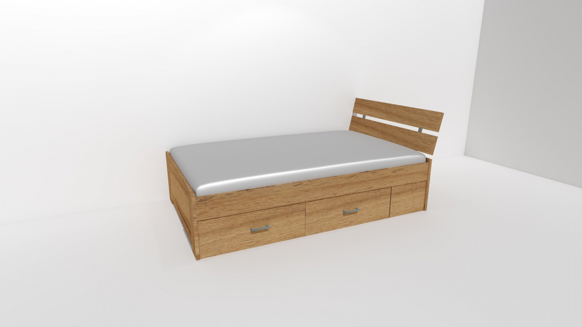 Zvýšená čela chrání nejen Vaše zdi, ale i Váš spánek. Mezera v těchto čelech dovoluje zdivu odvětrávání a omezuje tak vlhkost kolem lůžka. Několik možností provedení a výběr úložných prostor, nabízí nespočet variant pro Vaši spokojenost. Vyrobeno z lamina o síle 18 / 25 mm. Výběr akčních dekorů. Kvalitní kování a spojovací materiál je bez použití plastových součástek, vyjma ochranných krytek. Zvýšená lehací plocha 52 nebo 56 cm. Partnerská šířka 120 nebo 140 cm. Zátěž roštu do 120 kg.