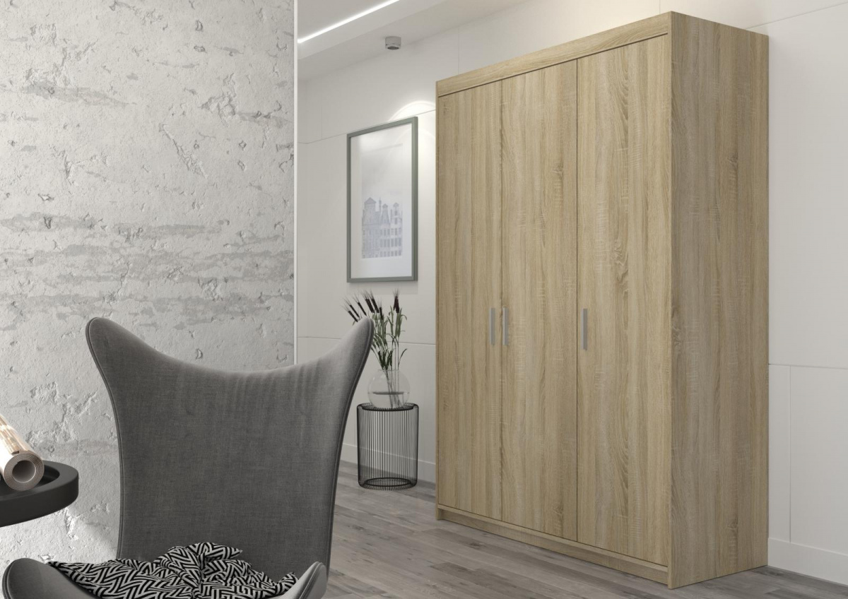 Šatní skříň Enja je vyrobena z kvalitního lamina tl.16 mm, které je odolné a snadné na údržbu. Vnitřní uspořádání skříně je praktické a poskytuje dostatek úložného prostoru. Své uplatnění najde v ložnici, předsíni i v dětském pokoji. Ke skříni lze dokoupit nádstavec. Skříň je dodávaná v demontu a nabízíme ji ve několika barevných provedeních. Součástí balení je montážní plánek včetně všech potřebných spojovacích materiálů. Vlivem nastavení monitorů, nebo displejů telefonů, se zobrazení barev na fotograii může od skutečnosti lišit.