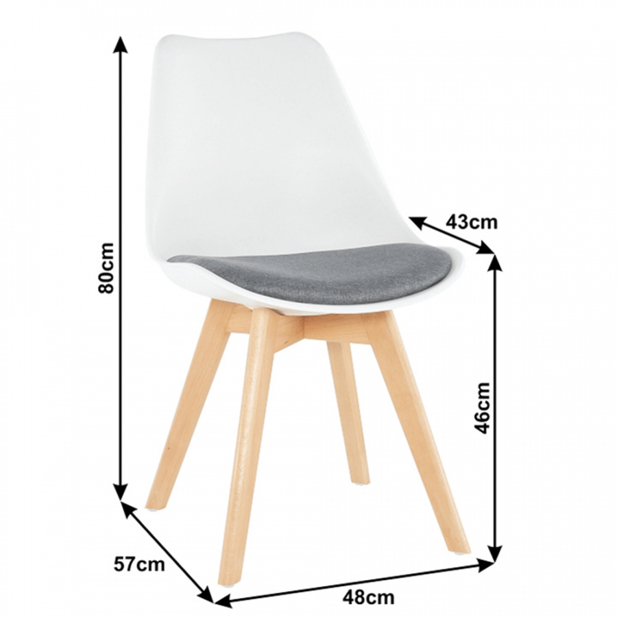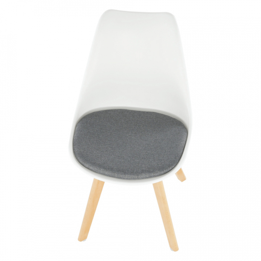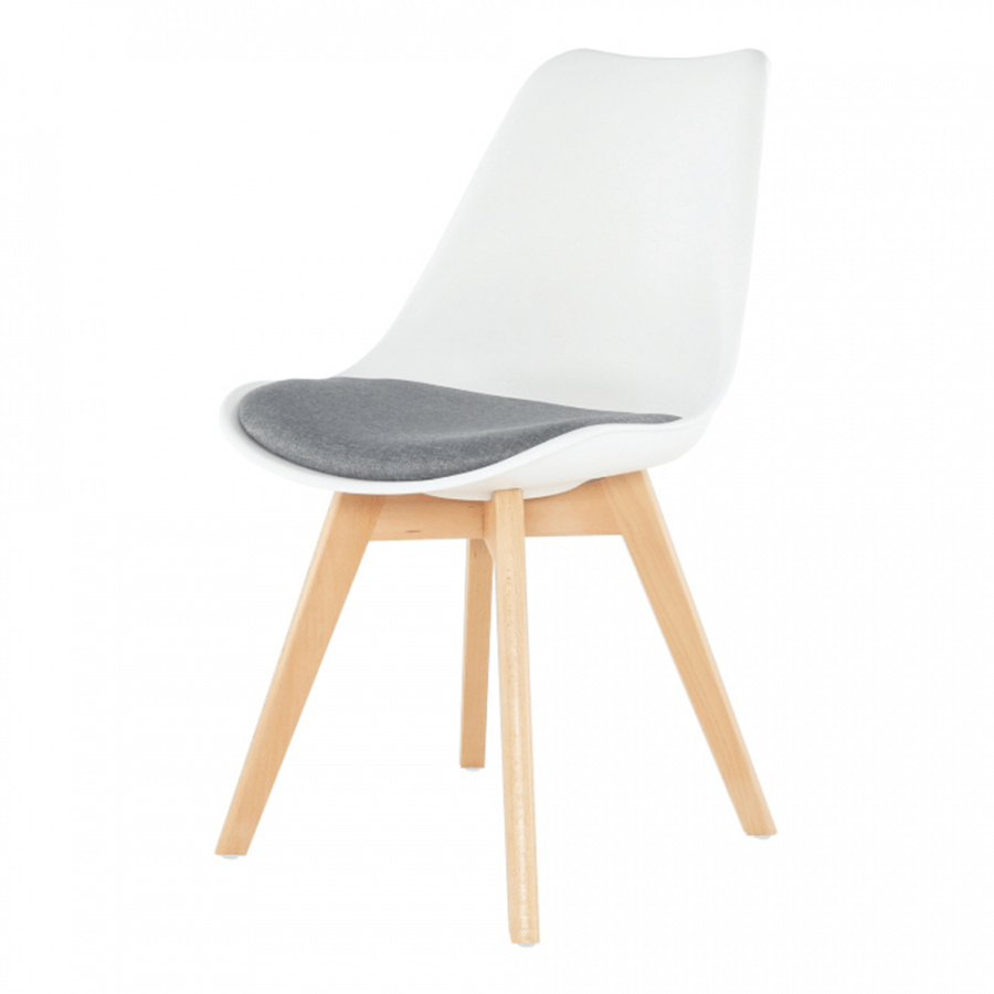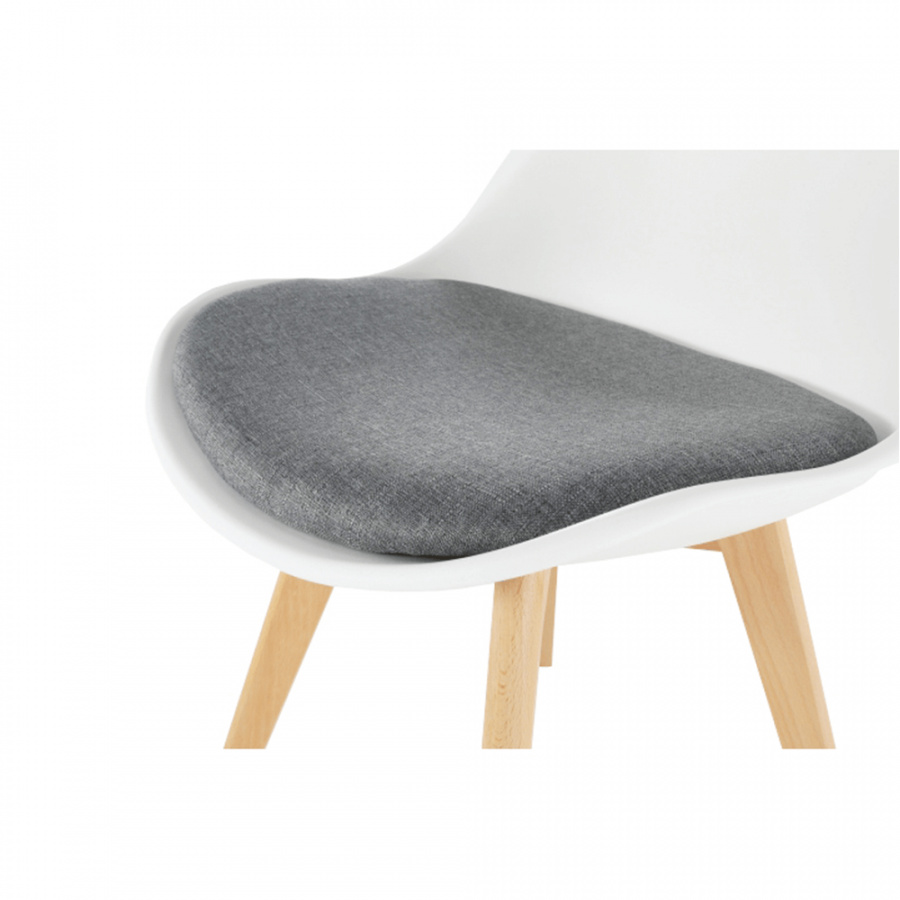 Designová židle s extra měkkým sedadlem Damara Materiál: plast / látka / dřevo Barva: bílá / šedá / buk Rozměry (ŠxHxV): 48x57x80 Výška sezení: 46 cm Hloubka sedu: 43 cm Nosnost: 110 kg Dodávané v demontu.