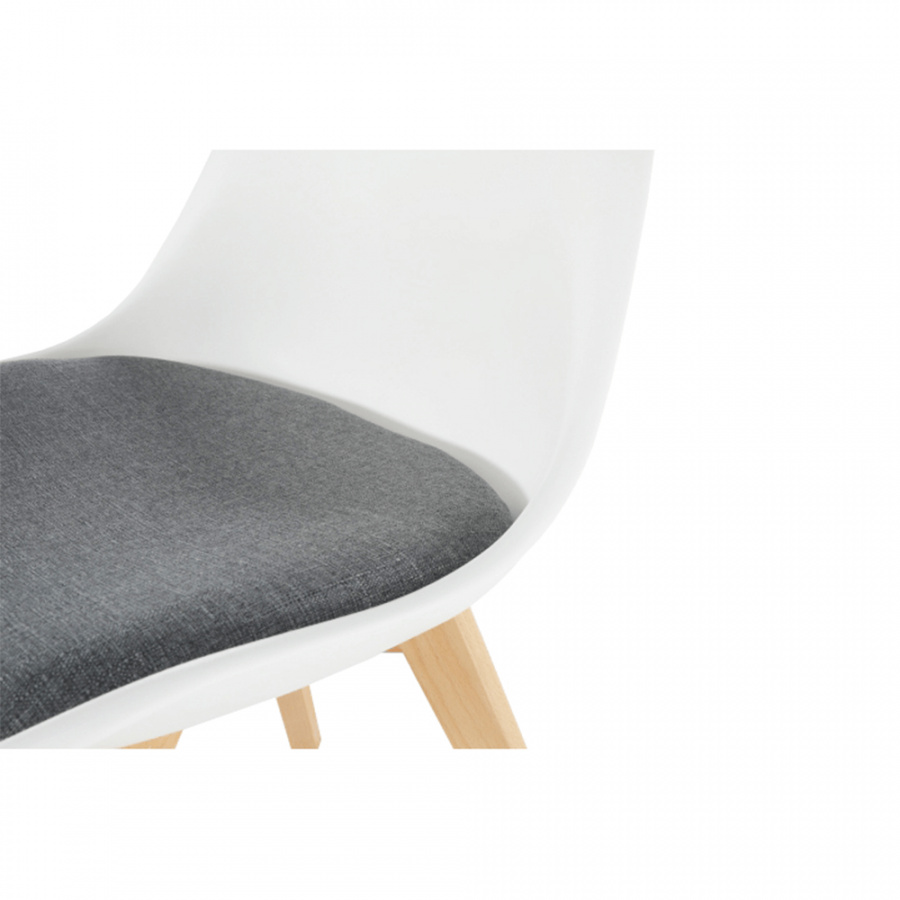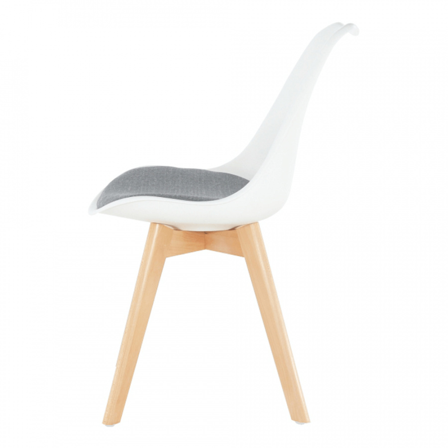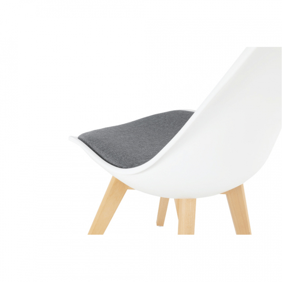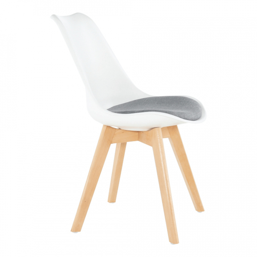 Designová židle s extra měkkým sedadlem Damara Materiál: plast / látka / dřevo Barva: bílá / šedá / buk Rozměry (ŠxHxV): 48x57x80 Výška sezení: 46 cm Hloubka sedu: 43 cm Nosnost: 110 kg Dodávané v demontu.