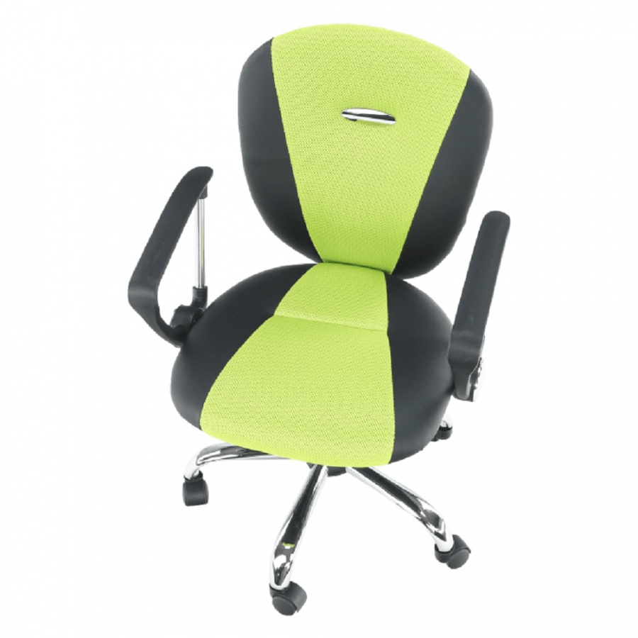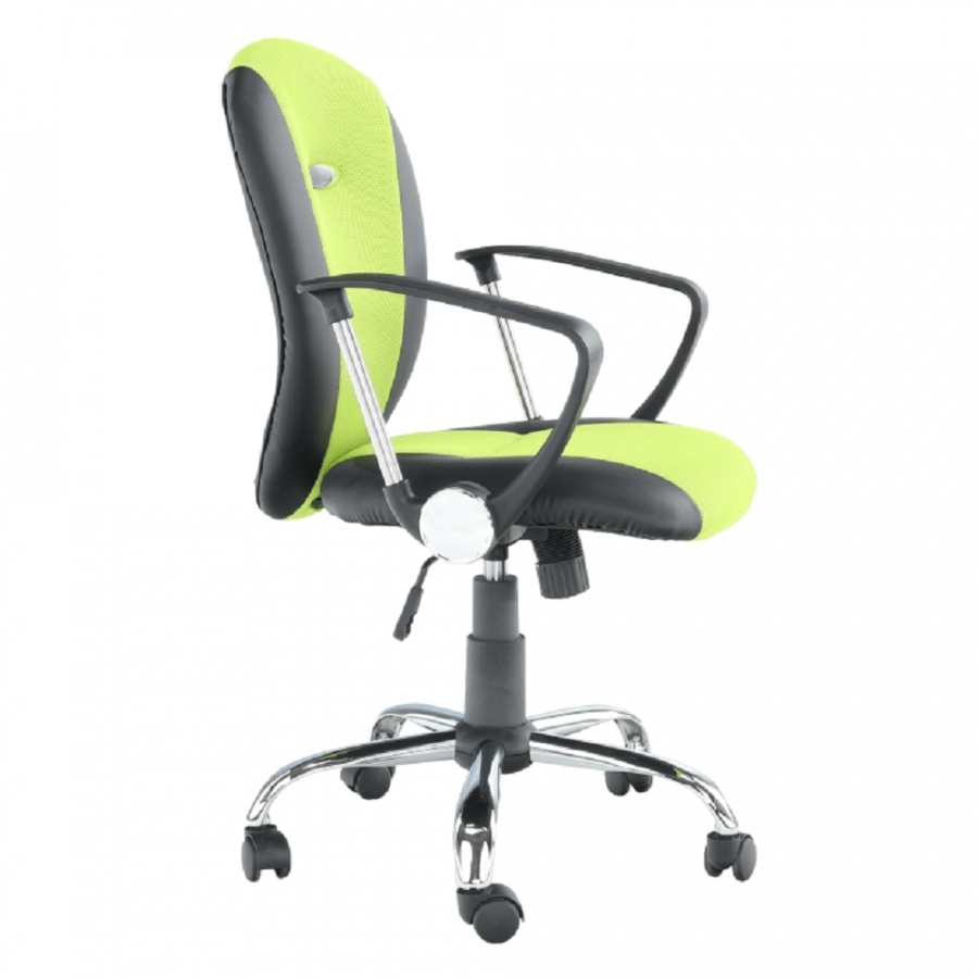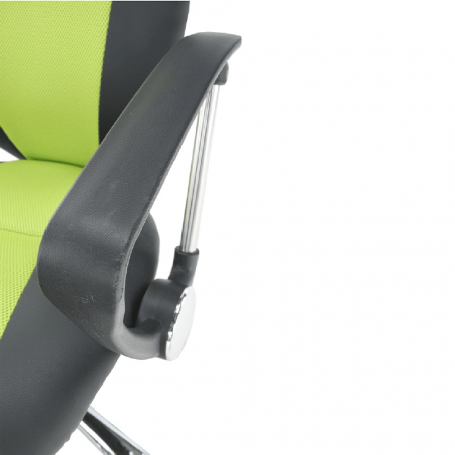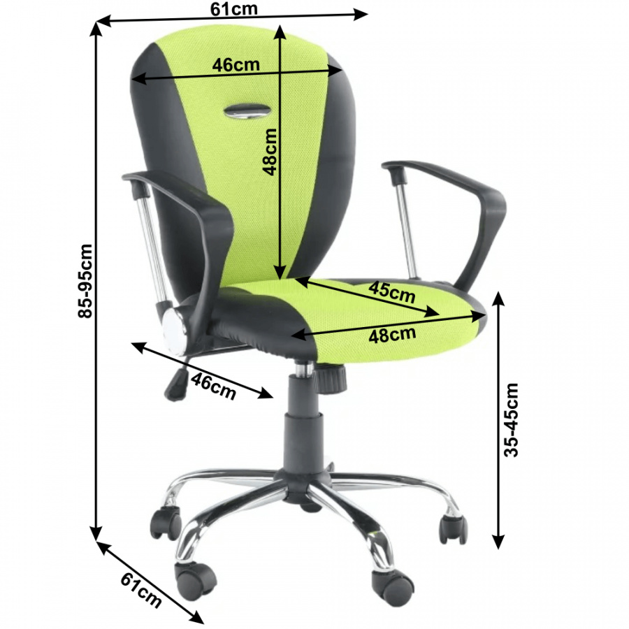 Kancelářské křeslo - síťovina hráškově zelená + černá, podstava (chrom), područky (chrom + plast), provedení: žlutá + černá, rozměry (ŠxHxV): 61x61x85-95 cm, Opěrka zad (ŠxV): 46x48 cm