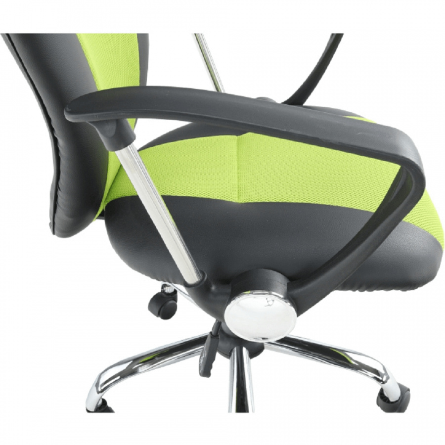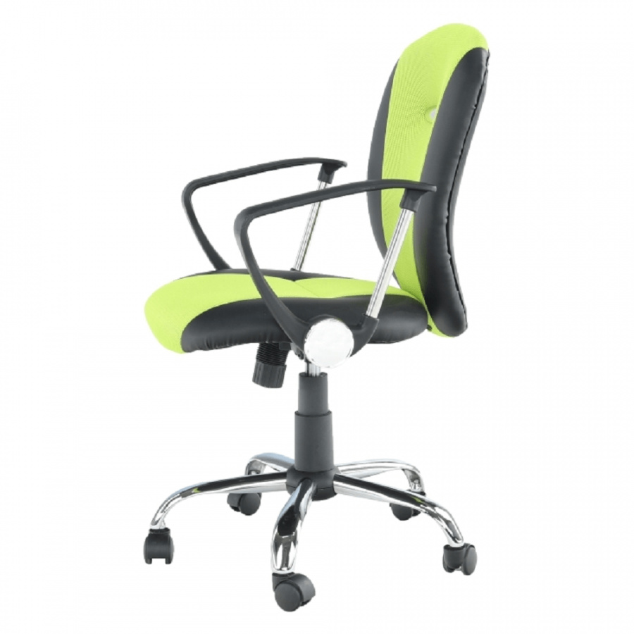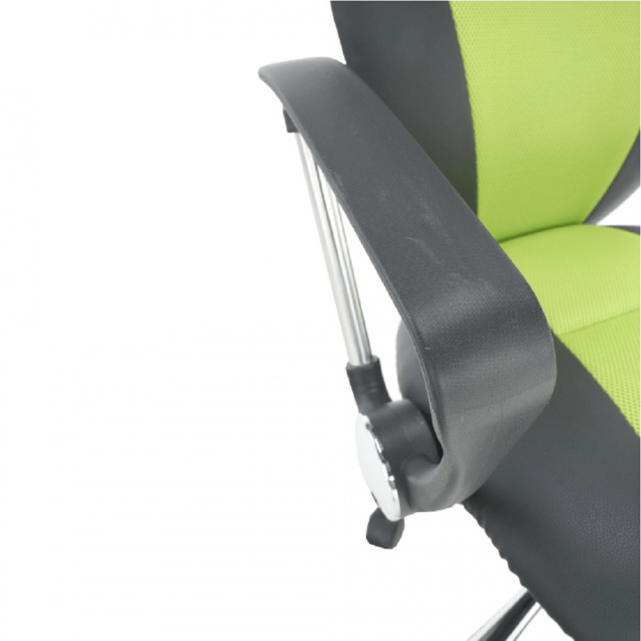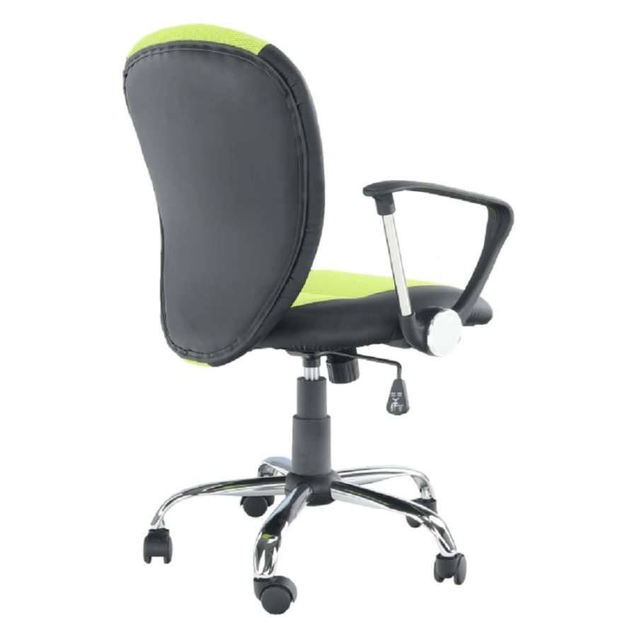 Kancelářské křeslo - síťovina hráškově zelená + černá, podstava (chrom), područky (chrom + plast), provedení: žlutá + černá, rozměry (ŠxHxV): 61x61x85-95 cm, Opěrka zad (ŠxV): 46x48 cm