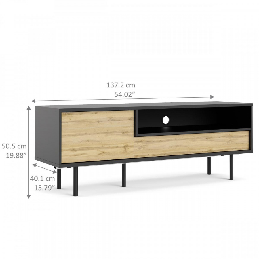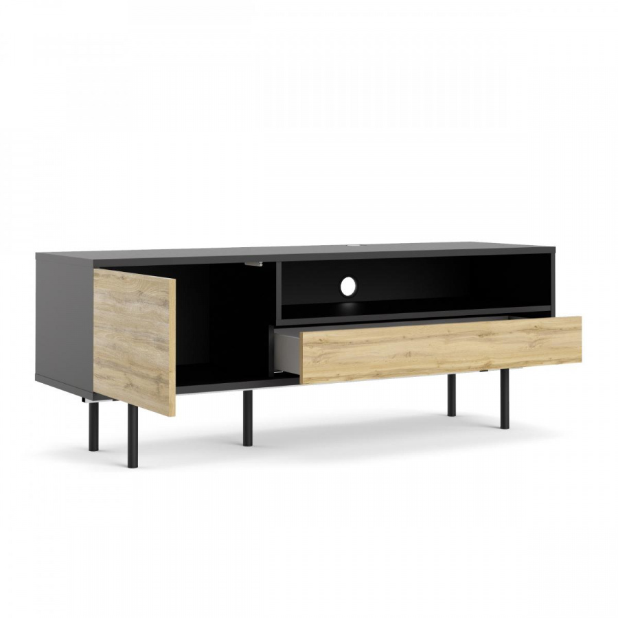 TV stolek Mateo nabízí vše, co potřebujete k uložení médií. Je vyrobený z lamina, které je odolné a lehce se udržuje. Jeho jednoduché rovné linie se skvěle hodí do každého interiéru a poskytuje dostatek prostoru nejen pro televizi, ale i pro ostatní elektroniku, jako je např.domácí kino, herní konzole, audio technika atd...Stolek je vybaven prostornpu skříňkou, zásuvkou a také otvorem pro vedení kabelů. TV stolek Mateo je dodávaný v demontu a součástí balení je montážní návod včetně všech potřebných spojovacích prvků.