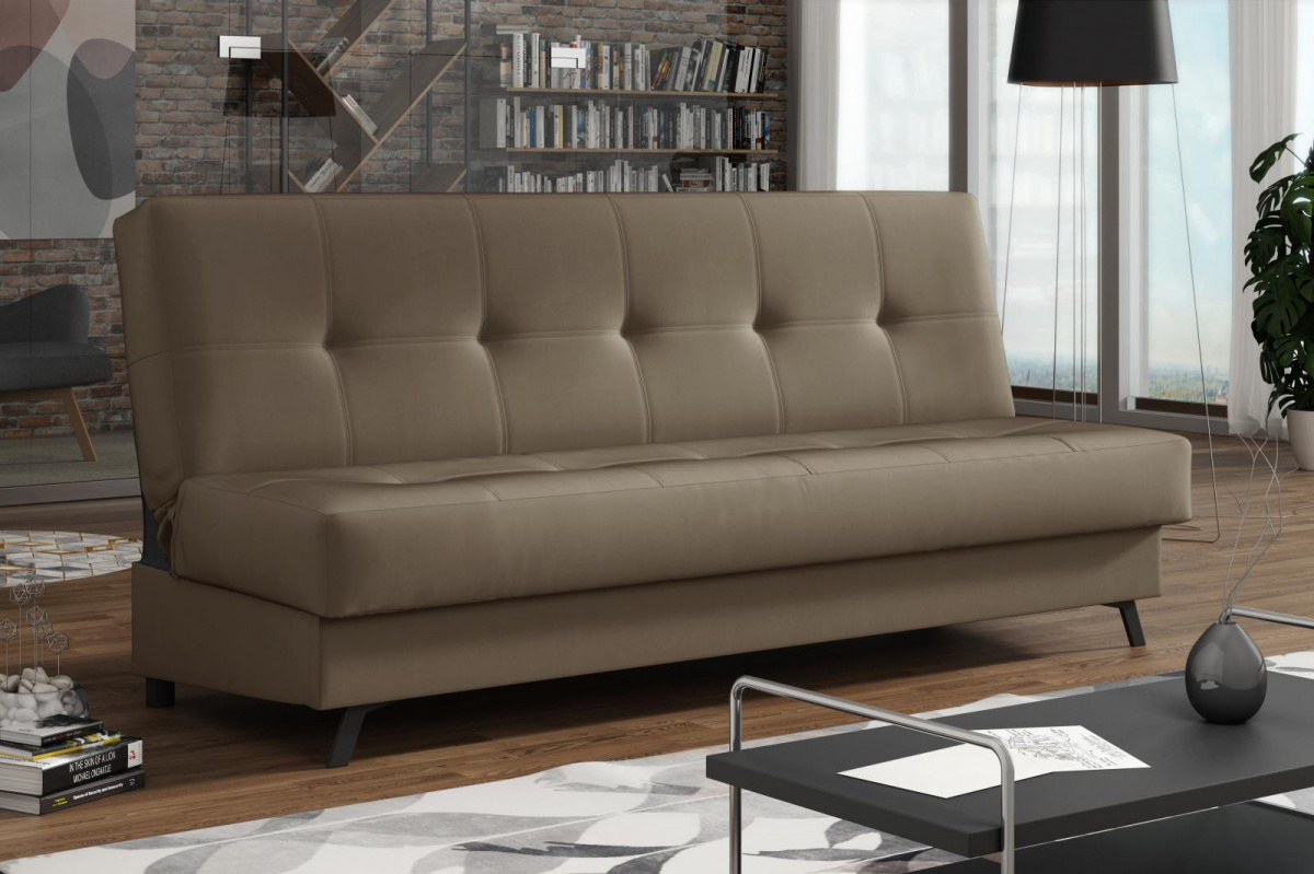 Pohovka Dream XIII je příjemným spojením elegance, funkčnosti a atraktivní ceny. Skvěle podtrhne moderní design obývacího pokoje, ale je také vhodná např. do studentského pokoje, pracovny, nebo hostinského pokoje. Pohovka je rozkládací. Jednoduchým rozložením získáte lůžko k občasnému přespání Vaší návštěvy. Samozřejmostí je i praktický úložný prostor, který můžete využít třeba na lůžkoviny. Pohovku nabízíme v několika barevných provedeních. Vyobrazené doplňky a dekorace nejsou v ceně. Zobrazení barev na fotograii se může od skutečnosti lišit.