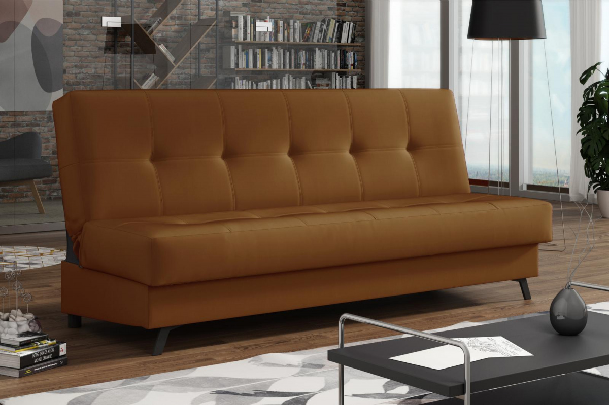 Pohovka Dream XIII je příjemným spojením elegance, funkčnosti a atraktivní ceny. Skvěle podtrhne moderní design obývacího pokoje, ale je také vhodná např. do studentského pokoje, pracovny, nebo hostinského pokoje. Pohovka je rozkládací. Jednoduchým rozložením získáte lůžko k občasnému přespání Vaší návštěvy. Samozřejmostí je i praktický úložný prostor, který můžete využít třeba na lůžkoviny. Pohovku nabízíme v několika barevných provedeních. Vyobrazené doplňky a dekorace nejsou v ceně. Zobrazení barev na fotograii se může od skutečnosti lišit.