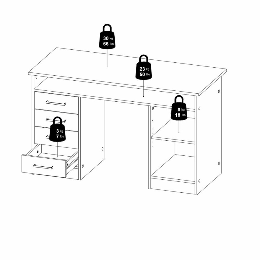 Psací stůl Felix je vhodný především do dětských a studentských pokojů, ale můžete s ním vybavit i kancelář, nebo domácí pracovnu. Psací stůl Felix poskytuje dostatek pracovního i úložného prostoru. Praktické zásuvky pojmou všechny nezbytné pomůcky a v případě potřeby je vždy budete mít po ruce. V případě umístění v kanceláři jistě oceníte uzamykatelnou část na důležité dokumenty, nebo osobní věci a také poličku, která vznikla v prostoru pod psací deskou. Stůl je vyrobený z odolného lamina, které je odolné a snadné na údržbu. Psací stůl Felix je dodávaný v demontu a součástí je montážní plánek včetně všech potřebných spojovacích materiálů. Vyobrazené doplňky a dekorace nejsou v ceně stolu.