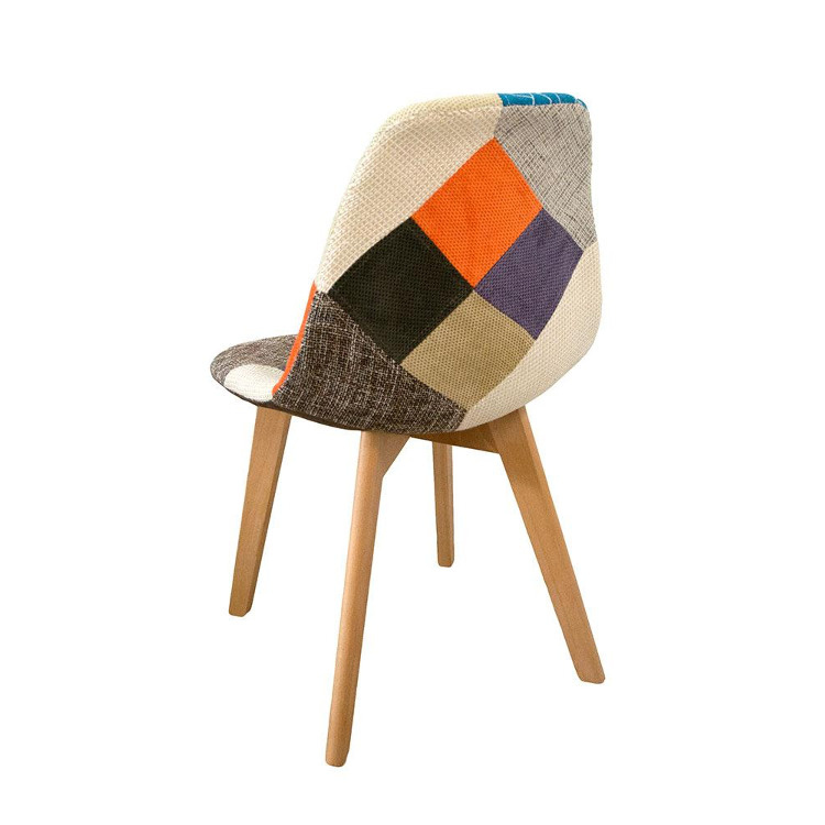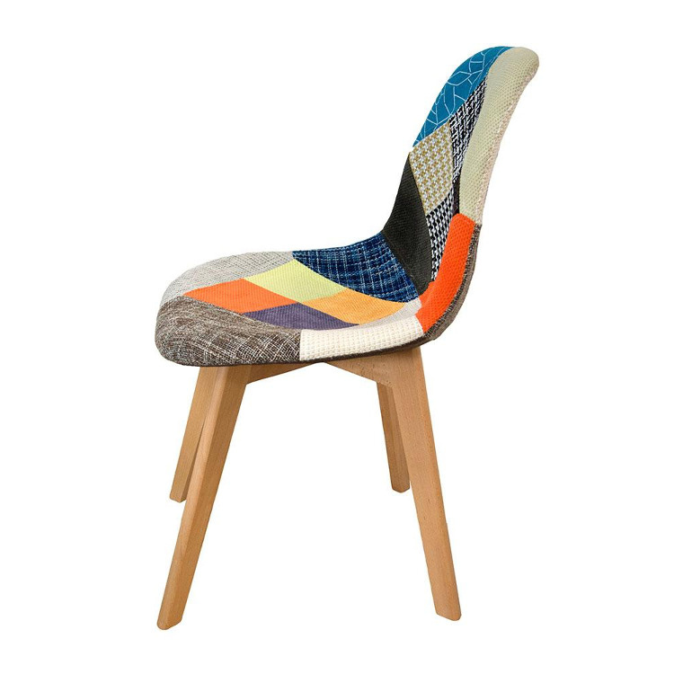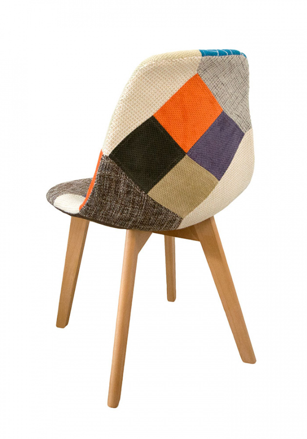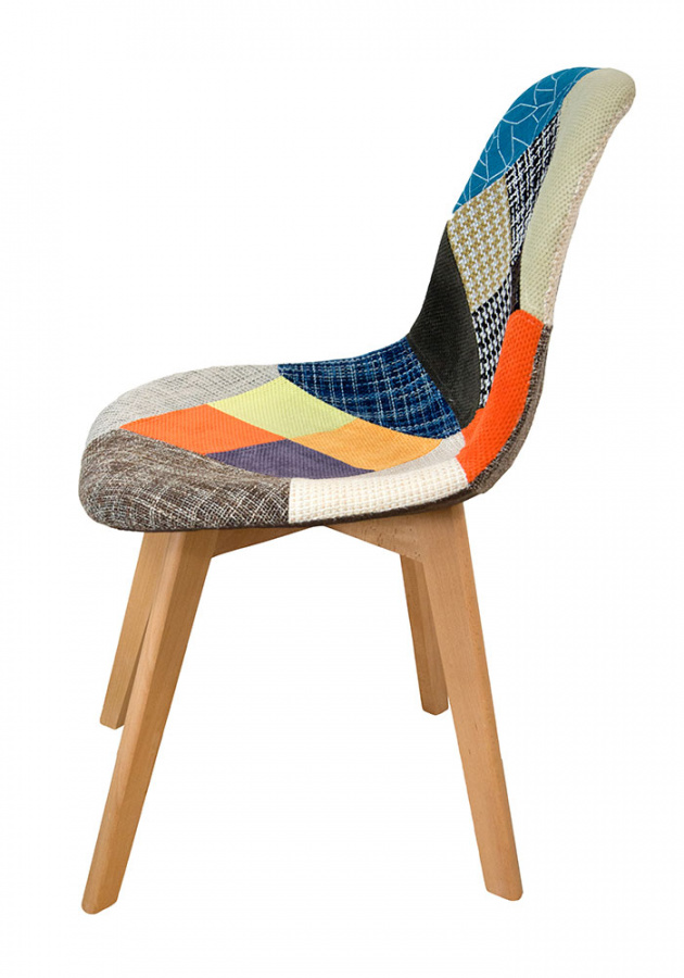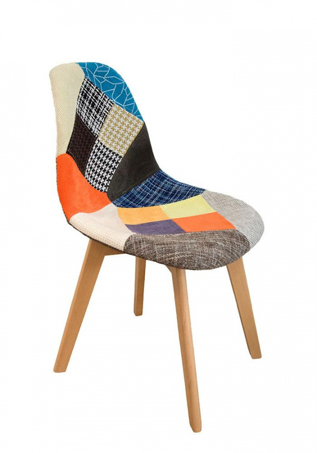 Celočalouněná moderní jídelní židle s podnoží z masivního buku. Potah - "patchwork" látka.
