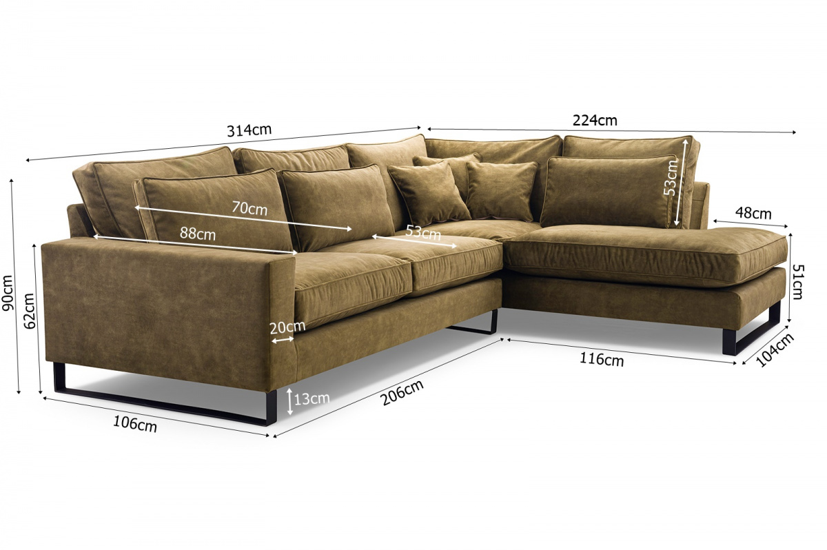 Polštáře jsou velmi pohodlnou součástí sedacích souprav. Jejich velké množství symbolizuje dokonalý relax. Sedací souprava Torre je tedy pro ty, kteří si rádi užijí relax nejen po náročném dni, skvělou volbou. Všechny polštáře jsou volně ložené a můžete je přizpůsobit svému pohodlí. Výplň sedáku tvoří pružiny typu faliste v kombinaci s pěnou T30 a HR 35/45. Sedací souprava je celočalouněná, takže ji můžete umístit do prostoru. Sedací souprava není rozkládací, ale po sejmutí polštářů, vznikne dostatečně velký prostor k občasnému přespání. Cena je uvedena za sedací soupravu včetně polštářů. Vyobrazené dekorace nejsou v ceně. Sedací soupravu nabízíme v levém, nebo pravém provedení. Na úvodní fotografii je vyobrazené LEVÉ provedení. Vlivem nastavení monitorů, nebo displejů telefonů, se zobrazení barev na fotografii může od skutečnosti lišit.