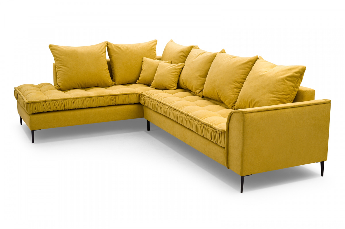 Polštáře jsou velmi pohodlnou součástí sedacích souprav. Jejich velké množství symbolizuje dokonalý relax. Sedací souprava Lidie je tedy pro ty, kteří si rádi užijí relax nejen po náročném dni, skvělou volbou. Její vzhled zaujme každou návštěvu. Prošívání sedáku a kovové nožky sedací soupravě přidává na eleganci. Všechny polštáře jsou volně ložené a můžete je přizpůsobit svému pohodlí. Výplň sedáku tvoří pružiny typu faliste v kombinaci s pěnou T30 a HR 35/45. Sedací souprava je celočalouněná, takže ji můžete umístit do prostoru. Sedací souprava není rozkládací, ale po sejmutí polštářů, vznikne dostatečně velký prostor k občasnému přespání. Cena je uvedena za sedací soupravu včetně polštářů. Vyobrazené dekorace nejsou v ceně. Sedací soupravu nabízíme v levém, nebo pravém provedení. Vlivem nastavení monitorů, nebo displejů telefonů, se zobrazení barev na fotografii může od skutečnosti lišit.