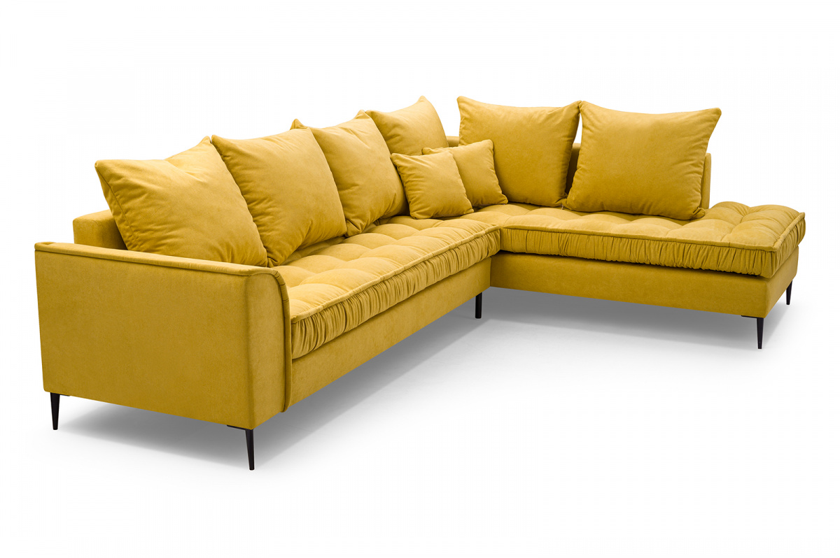 Polštáře jsou velmi pohodlnou součástí sedacích souprav. Jejich velké množství symbolizuje dokonalý relax. Sedací souprava Lidie je tedy pro ty, kteří si rádi užijí relax nejen po náročném dni, skvělou volbou. Její vzhled zaujme každou návštěvu. Prošívání sedáku a kovové nožky sedací soupravě přidává na eleganci. Všechny polštáře jsou volně ložené a můžete je přizpůsobit svému pohodlí. Výplň sedáku tvoří pružiny typu faliste v kombinaci s pěnou T30 a HR 35/45. Sedací souprava je celočalouněná, takže ji můžete umístit do prostoru. Sedací souprava není rozkládací, ale po sejmutí polštářů, vznikne dostatečně velký prostor k občasnému přespání. Cena je uvedena za sedací soupravu včetně polštářů. Vyobrazené dekorace nejsou v ceně. Sedací soupravu nabízíme v levém, nebo pravém provedení. Vlivem nastavení monitorů, nebo displejů telefonů, se zobrazení barev na fotografii může od skutečnosti lišit.