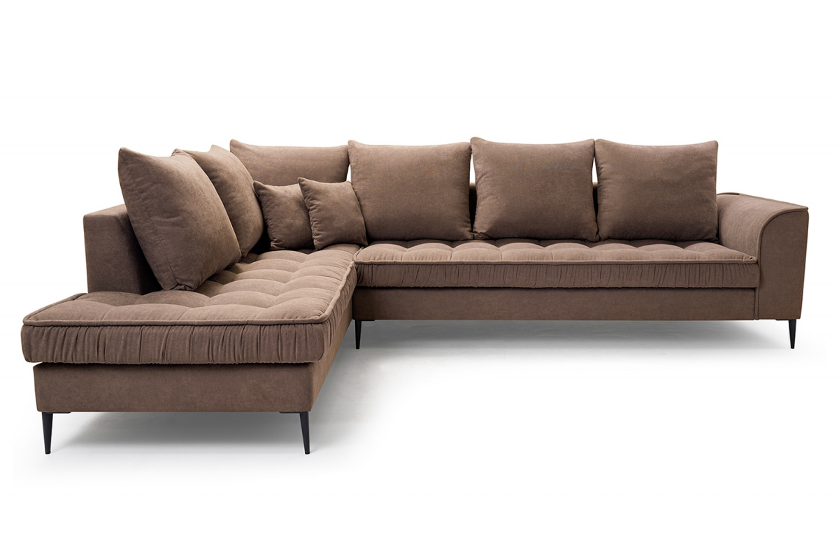 Polštáře jsou velmi pohodlnou součástí sedacích souprav. Jejich velké množství symbolizuje dokonalý relax. Sedací souprava Lidie je tedy pro ty, kteří si rádi užijí relax nejen po náročném dni, skvělou volbou. Její vzhled zaujme každou návštěvu. Prošívání sedáku a kovové nožky sedací soupravě přidává na eleganci. Všechny polštáře jsou volně ložené a můžete je přizpůsobit svému pohodlí. Výplň sedáku tvoří pružiny typu faliste v kombinaci s pěnou T30 a HR 35/45. Sedací souprava je celočalouněná, takže ji můžete umístit do prostoru. Sedací souprava není rozkládací, ale po sejmutí polštářů, vznikne dostatečně velký prostor k občasnému přespání. Cena je uvedena za sedací soupravu včetně polštářů. Vyobrazené dekorace nejsou v ceně. Sedací soupravu nabízíme v levém, nebo pravém provedení. Vlivem nastavení monitorů, nebo displejů telefonů, se zobrazení barev na fotografii může od skutečnosti lišit.
