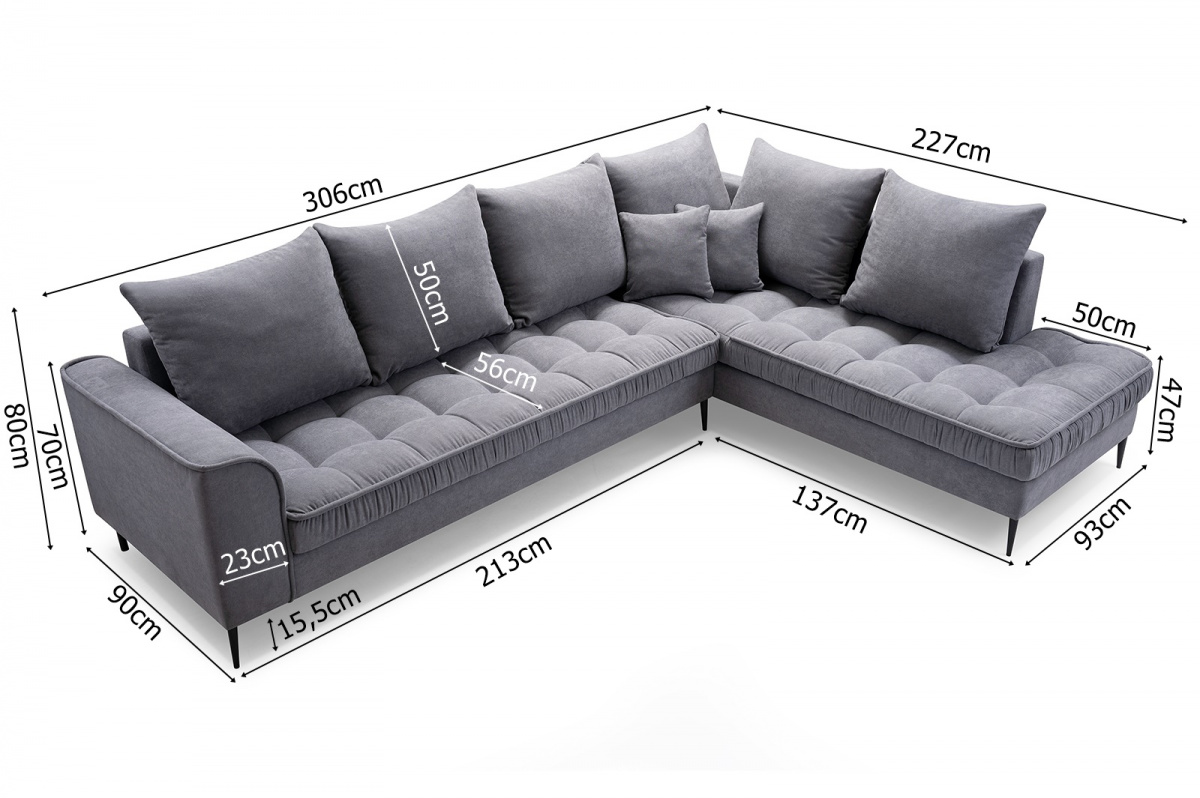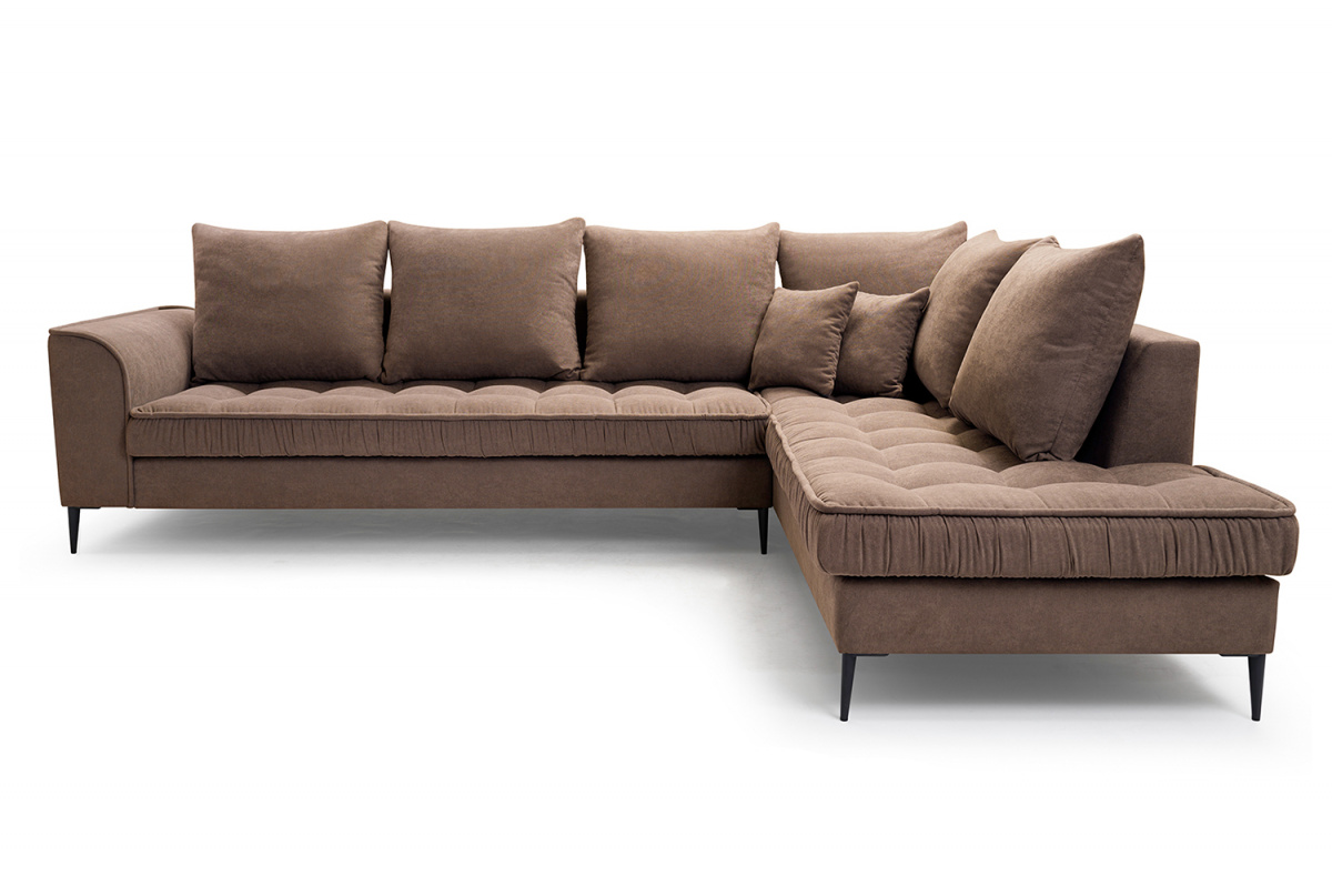 Polštáře jsou velmi pohodlnou součástí sedacích souprav. Jejich velké množství symbolizuje dokonalý relax. Sedací souprava Lidie je tedy pro ty, kteří si rádi užijí relax nejen po náročném dni, skvělou volbou. Její vzhled zaujme každou návštěvu. Prošívání sedáku a kovové nožky sedací soupravě přidává na eleganci. Všechny polštáře jsou volně ložené a můžete je přizpůsobit svému pohodlí. Výplň sedáku tvoří pružiny typu faliste v kombinaci s pěnou T30 a HR 35/45. Sedací souprava je celočalouněná, takže ji můžete umístit do prostoru. Sedací souprava není rozkládací, ale po sejmutí polštářů, vznikne dostatečně velký prostor k občasnému přespání. Cena je uvedena za sedací soupravu včetně polštářů. Vyobrazené dekorace nejsou v ceně. Sedací soupravu nabízíme v levém, nebo pravém provedení. Vlivem nastavení monitorů, nebo displejů telefonů, se zobrazení barev na fotografii může od skutečnosti lišit.