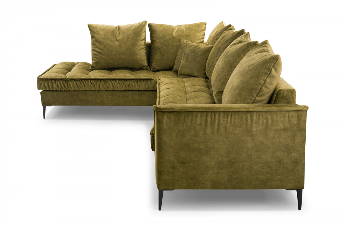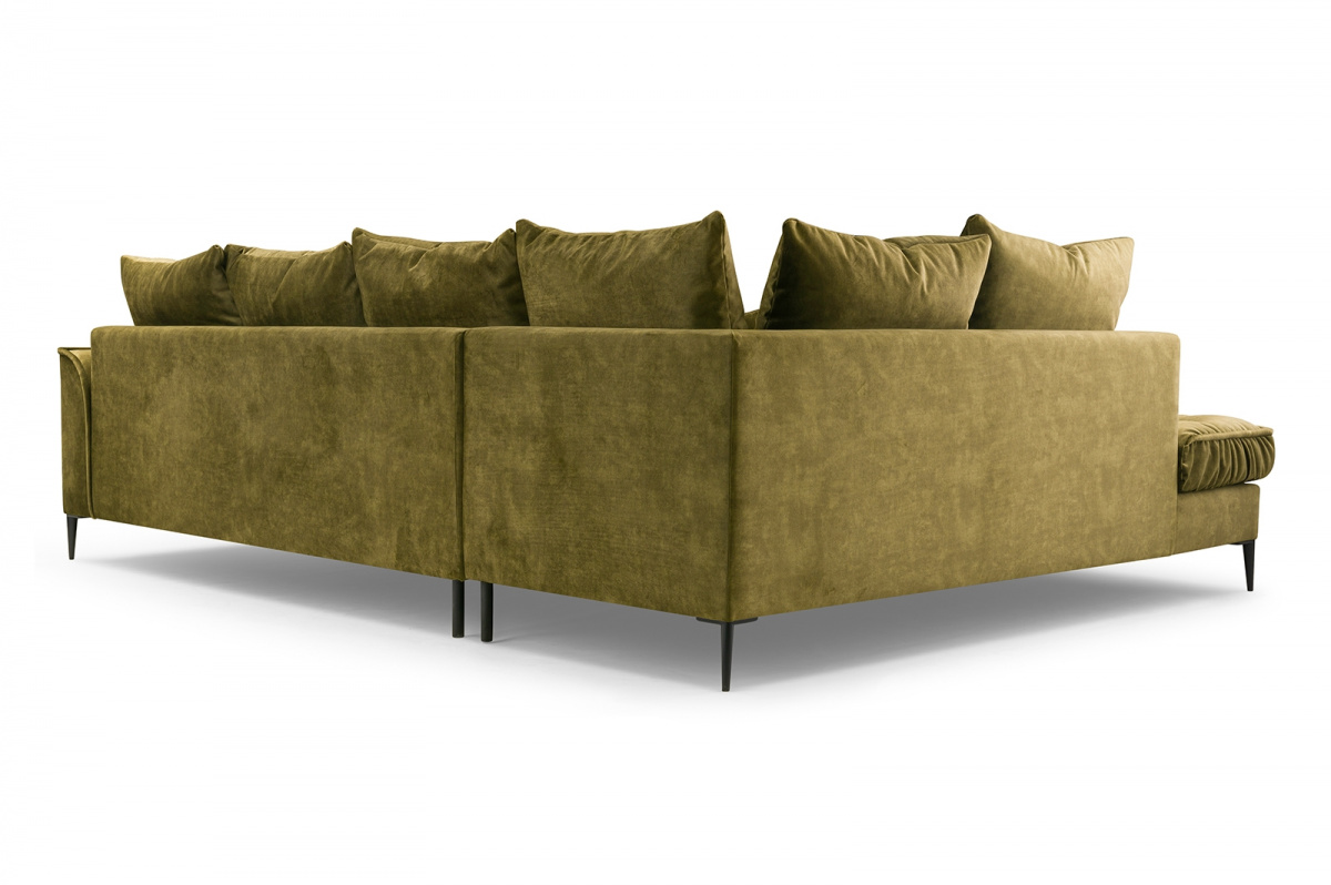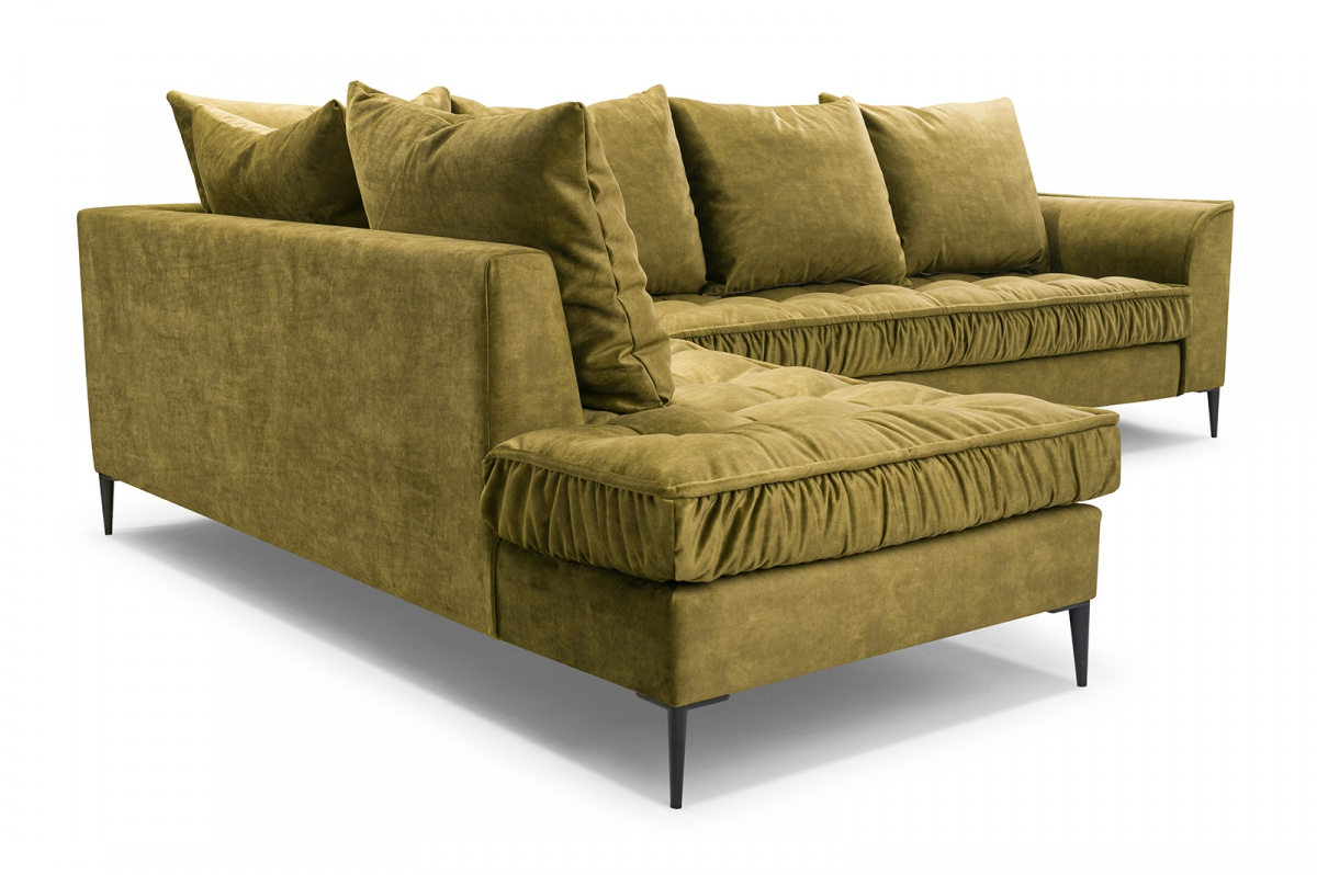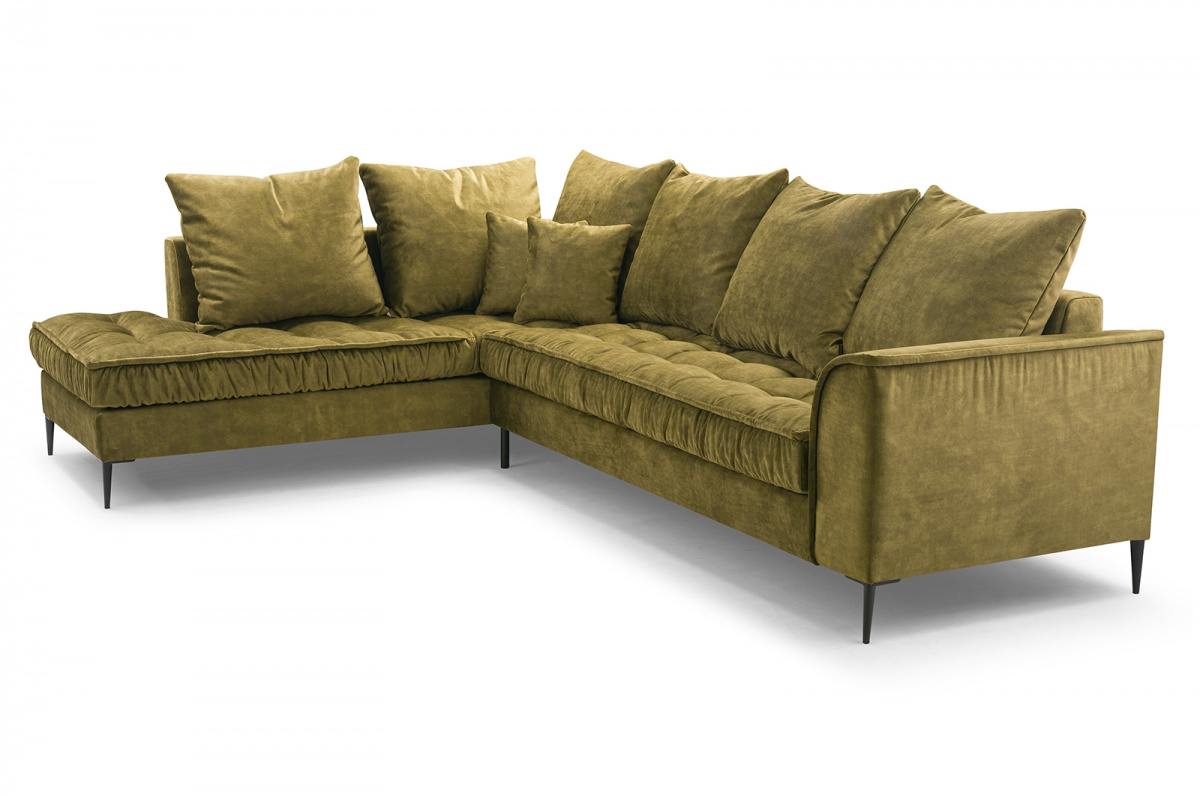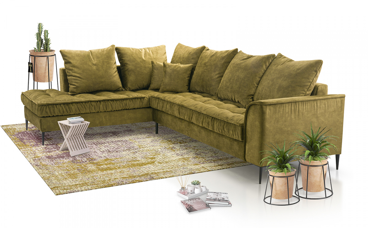 Polštáře jsou velmi pohodlnou součástí sedacích souprav. Jejich velké množství symbolizuje dokonalý relax. Sedací souprava Lidie je tedy pro ty, kteří si rádi užijí relax nejen po náročném dni, skvělou volbou. Její vzhled zaujme každou návštěvu. Prošívání sedáku a kovové nožky sedací soupravě přidává na eleganci. Všechny polštáře jsou volně ložené a můžete je přizpůsobit svému pohodlí. Výplň sedáku tvoří pružiny typu faliste v kombinaci s pěnou T30 a HR 35/45. Sedací souprava je celočalouněná, takže ji můžete umístit do prostoru. Sedací souprava není rozkládací, ale po sejmutí polštářů, vznikne dostatečně velký prostor k občasnému přespání. Cena je uvedena za sedací soupravu včetně polštářů. Vyobrazené dekorace nejsou v ceně. Sedací soupravu nabízíme v levém, nebo pravém provedení. Vlivem nastavení monitorů, nebo displejů telefonů, se zobrazení barev na fotografii může od skutečnosti lišit.