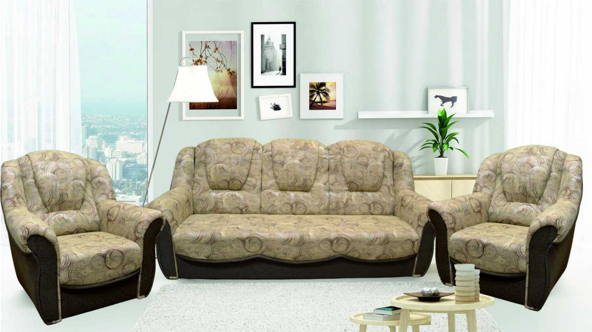 Sedací souprava Bára je stále velmi oblíbeným klasickým modelem sedací soupravy v provedení 3F+1+1. Je velmi pohodlná a zároveň praktická. Sedací souprava je rozkládací a samozřejmostí je i úložný prostor, který můžete využít např.na lůžkoviny. Jednoduchým rozkladem pomocí systému "klik klak" vznikne lůžko k příležitostnému přespání Vaší návštěvy. Sedací souprava je potažena kvalitní látkou, v kombinaci vzoru a jednobarevné látky. Cena sedací soupravy je uvedena za rozkládací trojsed a dvě křesla. Zobrazení barev na fotografii se může od skutečnosti nepatrně lišit.