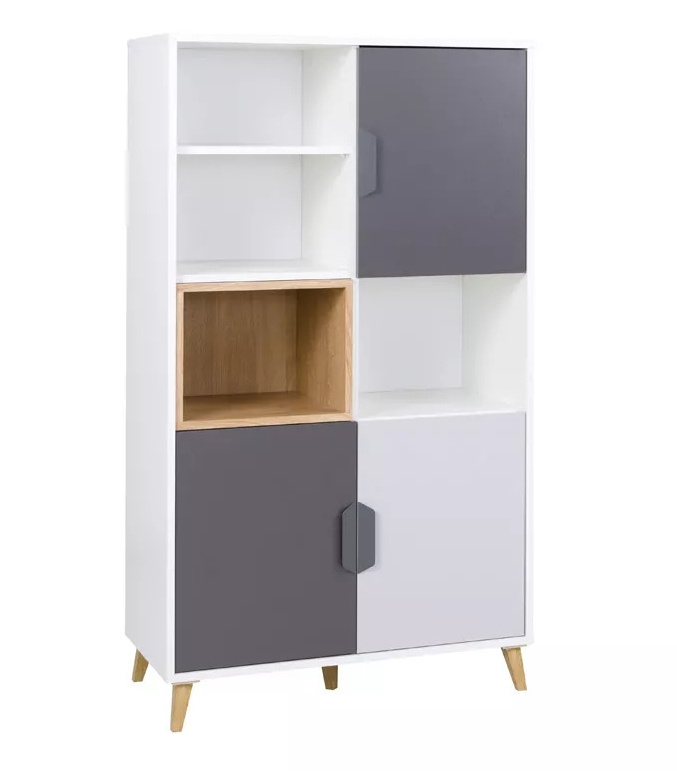 Regál Poker R6 je vyroben z lamina v krásném dekoru bílá, grafit, šedá a dub Lefkas. Lamino je odolné a jistě oceníte i snadnou údržbu. Regál je velmi praktický, kombinace dvířek a polic jistě pojme vše potřebné. Regál je dodáván v demontu. Součástí balení je montážní návod včetně všech spojovacích prvků.