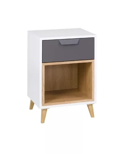 Noční stolek Poker R11 je vyroben z lamina v krásném dekoru bílá, grafit, šedá a dub Lefkas. Lamino je odolné a jistě oceníte i snadnou údržbu. Noční stolek má polici např. na knihy a také šuplík. Je dodáván v demontu. Součástí balení je montážní návod včetně všech spojovacích prvků.