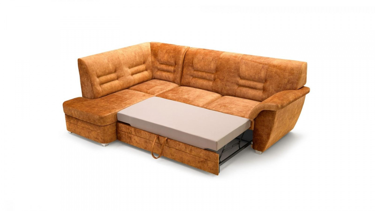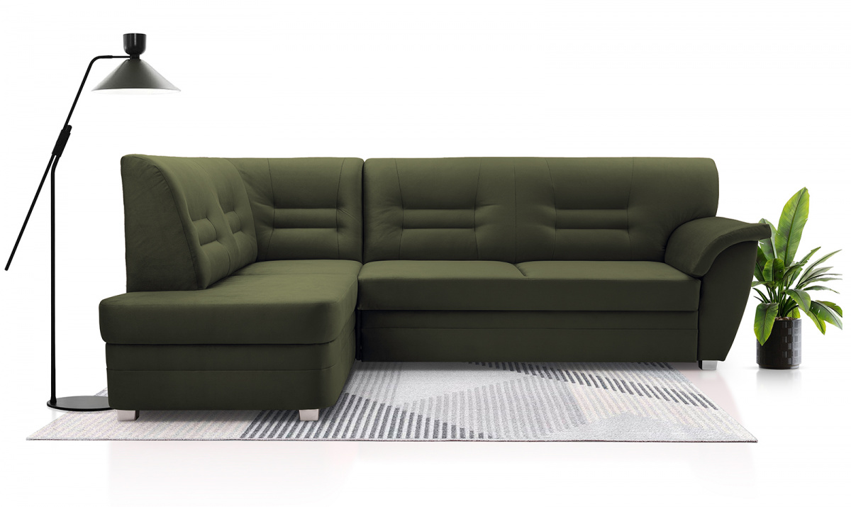 Moderní rohová sedací souprava Dornia je rozkládací. Jednoduchým rozkladem vzniká lůžko vhodné k příležitostnému spaní. Má uložný prostor, který lze využít například na lůžkoviny. Sedací souprava je pružinová v kombinaci s kvalitní PUR pěnou. Je celočalouněná a je možno ji umístit také do prostoru.