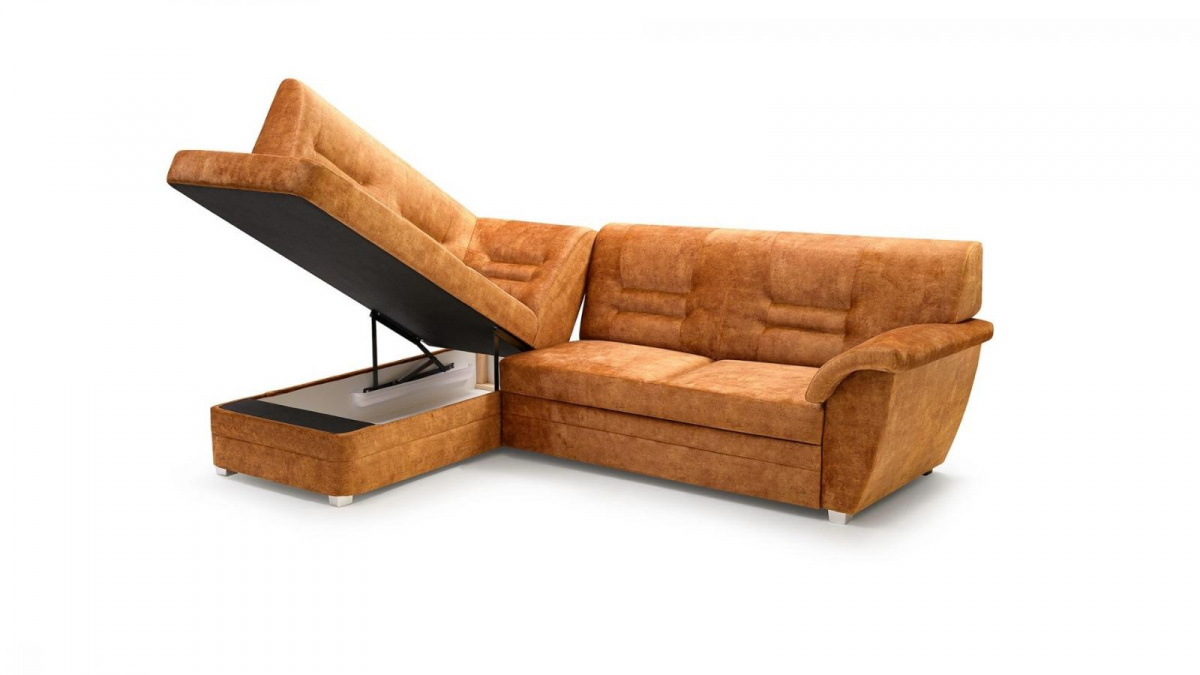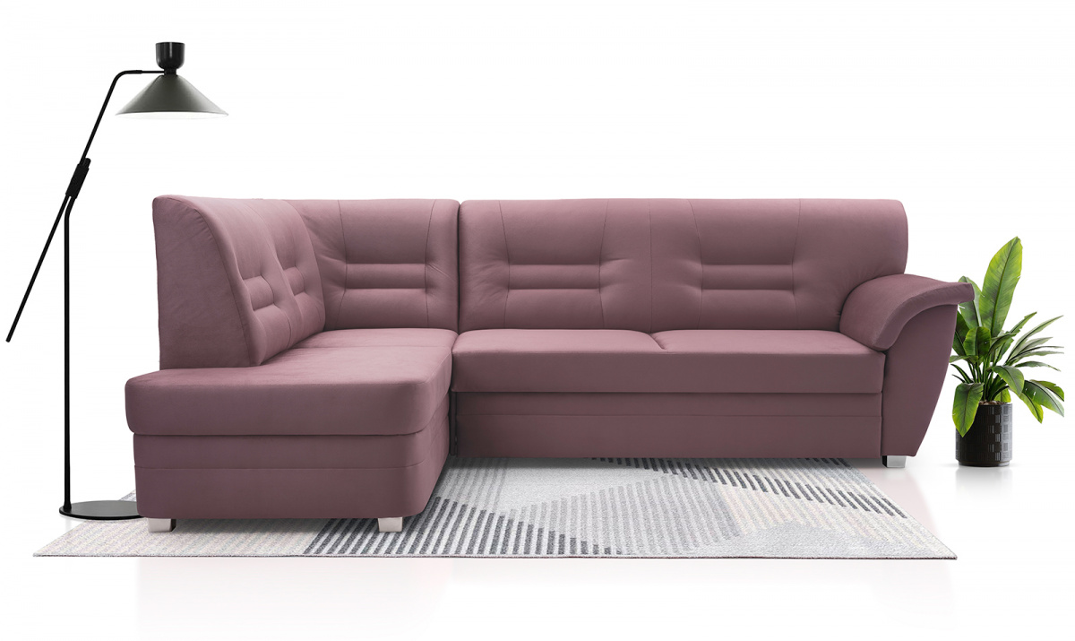 Moderní rohová sedací souprava Dornia je rozkládací. Jednoduchým rozkladem vzniká lůžko vhodné k příležitostnému spaní. Má uložný prostor, který lze využít například na lůžkoviny. Sedací souprava je pružinová v kombinaci s kvalitní PUR pěnou. Je celočalouněná a je možno ji umístit také do prostoru.