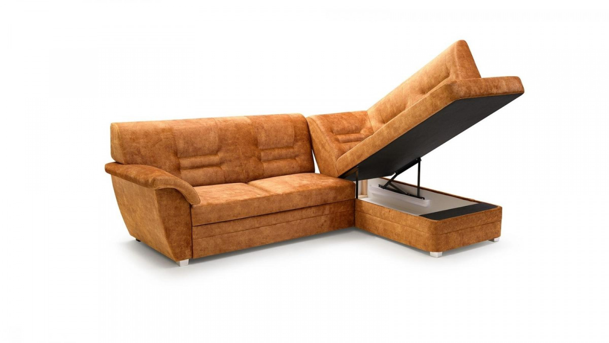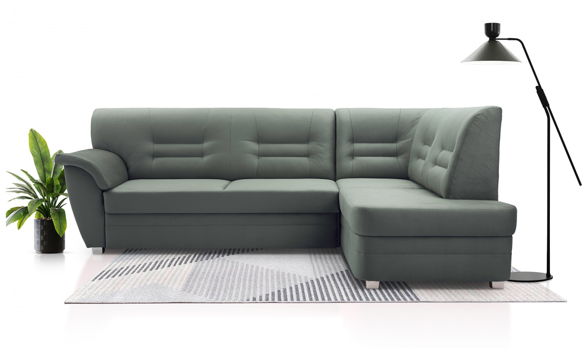Moderní rohová sedací souprava Dornia je rozkládací. Jednoduchým rozkladem vzniká lůžko vhodné k příležitostnému spaní. Má uložný prostor, který lze využít například na lůžkoviny. Sedací souprava je pružinová v kombinaci s kvalitní PUR pěnou. Je celočalouněná a je možno ji umístit také do prostoru.