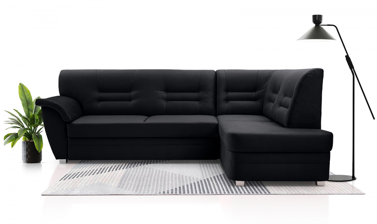 Moderní rohová sedací souprava Dornia je rozkládací. Jednoduchým rozkladem vzniká lůžko vhodné k příležitostnému spaní. Má uložný prostor, který lze využít například na lůžkoviny. Sedací souprava je pružinová v kombinaci s kvalitní PUR pěnou. Je celočalouněná a je možno ji umístit také do prostoru.