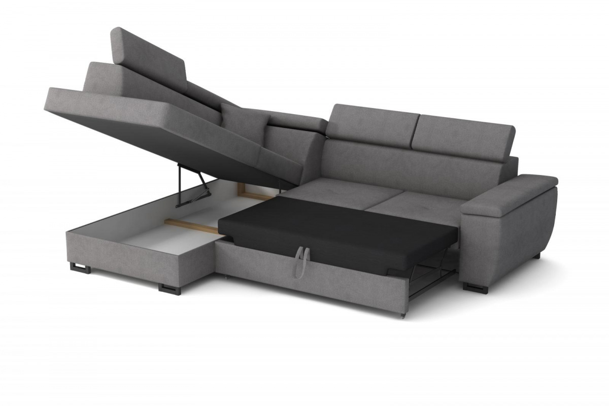 Sedací souprava Wiliam je vyrobena v nadčasovém designu, který se hodí do každého interiéru. Spojuje v sobě 2 důležité prvky, které nesmí chybět žádné sedací soupravě. Jsou to pohodlí a praktičnost. Praktickou stránkou této sedací soupravy je možnost rozložení pro příležitostné přespání návštěvy a nepostradatelný úložný prostor. Výplň sedáků tvoří kvalitní PUR pěna v kombinaci s vlnitými pružinami. Pohodlí při odpočinku, sledování televize, nebo posezení s přáteli zvyšují polohovací opěrky, které si můžete nastavit tak, aby pro vás sezení bylo co nejpohodlnější. Sedací souprava je potažena elegantní látkou a je celočalouněná, takže ji můžete umístit i do prostoru. Nabízíme ji v levém i pravém provedení a v několika barvách. Vyobrazené doplňky a dekorace nejsou v ceně. Vzorek látky, ve které bude sedací souprava dodána, je vyobrazen v doplňkových fotografiích. Fotografie sedací soupravy v rozkladu jsou pouze ilustrační.