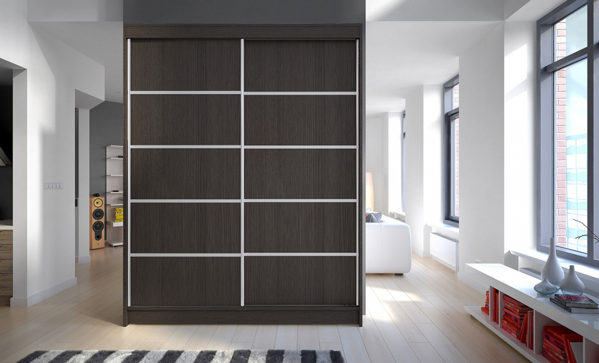 Skříň je vyrobena z kvalitního lamina. Díky svému vnitřnímu uspořádání nabízí dostatek úložného prostoru, posuvné dveře šetří prostor a zrcadlo ho opticky zvětšuje. Skříň je vhodná do ložnice, dětského nebo studentského pokoje, do předsíně i kanceláře. Vnitřní uspořádání skříně je vyobrazeno na fotografii. Skříň je dodávána v demontu a součástí je montážní plánek včetně všech potřebných spojovacích materiálů. Vyobrazené dekorace nejsou v ceně.