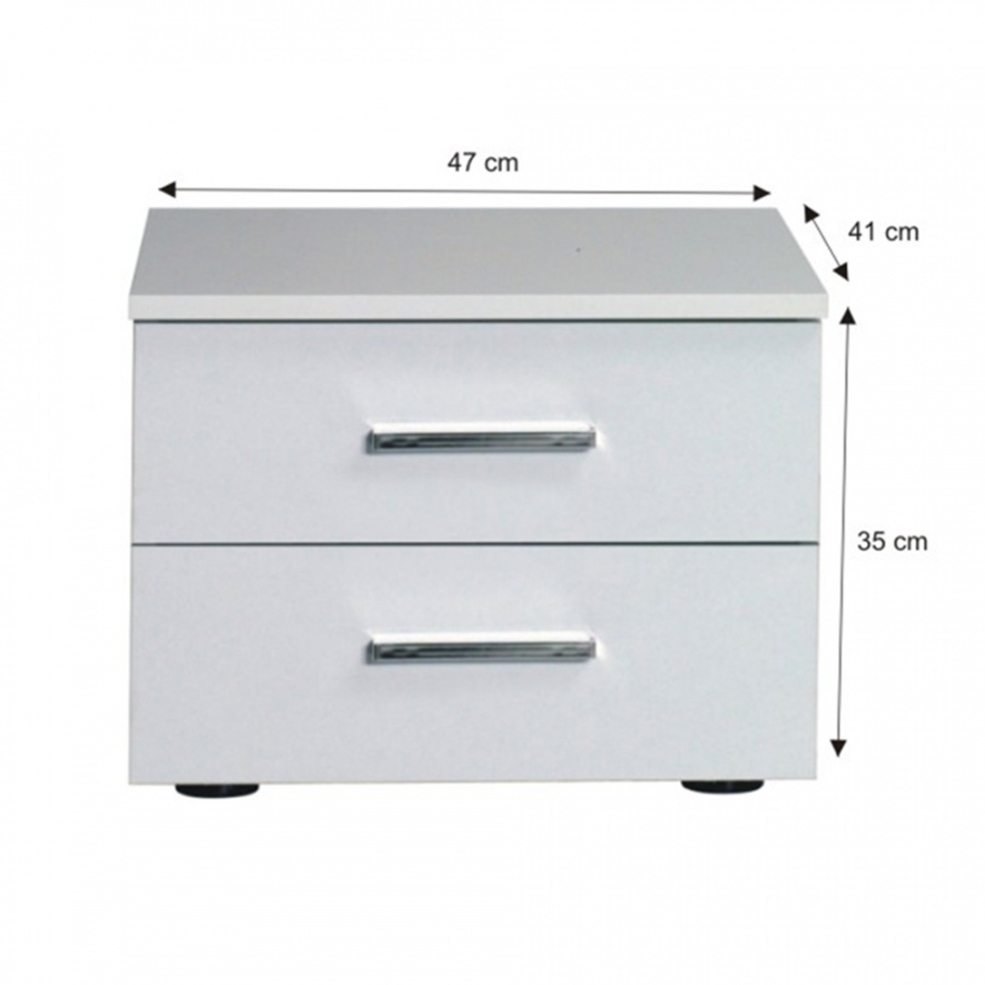 Noční stolek, 2 kusy, ASIENA Materiál: DTD laminovaná Barva: bílá / vysoký bílý lesk HG Rozměry (ŠxHxV): 47x41x35 cm Dodávané v demontu.