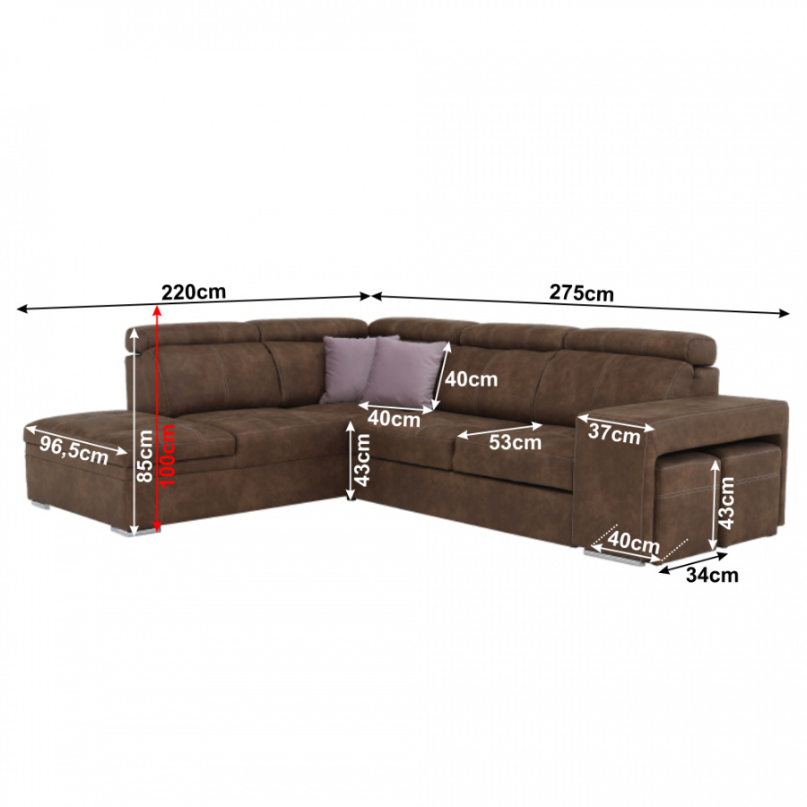 Rozměry (ŠxHxV): 275x220x85 / 100 cm, plocha na spaní (ŠxD): 120x190 cm