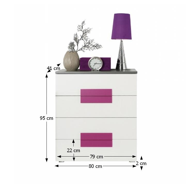 Komoda čtyřzásuvková, vhodná na zařízení dětských a studentských pokojů.