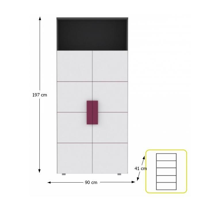 Skříň policová, dvoudvéřová, vhodná na zařízení dětských a studentských pokojů.