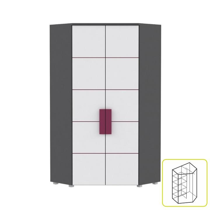 Skříň rohová kombinovaná, dvoudveřová, vhodná na zařízení dětských a studentských pokojů.