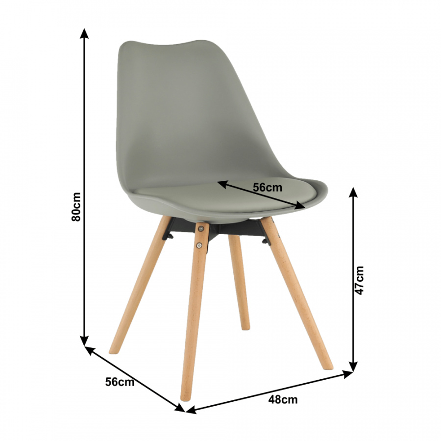 židle Materiál: dřevo / plast / ekokůže Barva: světlešedá / buk Rozměry (ŠxHxV): 48x56x80 cm Výška sedu: 47 cm Hloubka sedu: 56 cm Extra měkké sedadlo Nosnost: 100 kg Dodávané v demontu