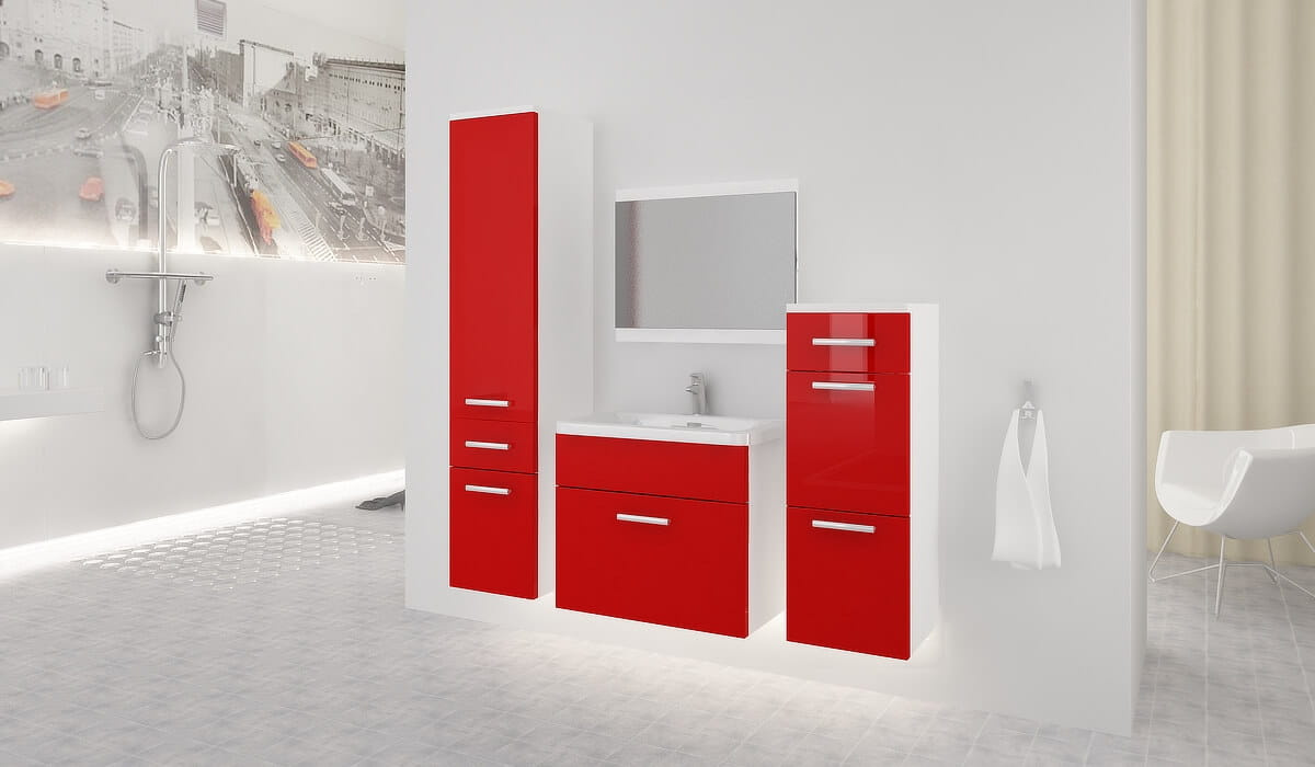 Moderní a jednoduchá koupelnová sestava, která splní svůj praktický i dekorativní účel. Sestava se skládá ze dvou závěsných skříněk, zrcadla a skříňky pod umyvadlo včetně umyvadla. Koupelnová sestava má plastové úchyty v šedé barvě. Sestava je vyrobena z lamina tloušťky 16 mm v šedém lesku, korpusy jsou v bílém provedení tloušťky lamina 18 mm. Zboží je dodáváno v demontu se schematickým návodem k montáži. Vyobrazené dekorace nejsou v ceně sestavy. Sestavu nabízíme také v dalších barevných provedeních, které jsou k vidění na vedlejších fotografiích.