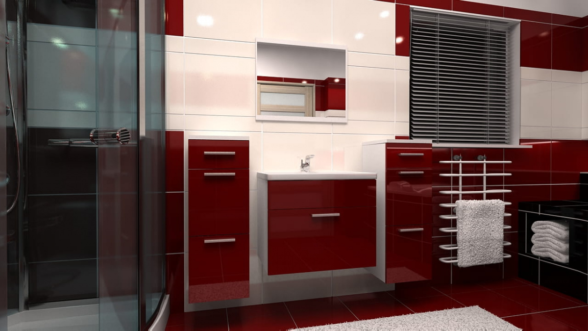 Moderní a jednoduchá koupelnová sestava, která splní svůj praktický i dekorativní účel. Sestava se skládá ze dvou závěsných skříněk, zrcadla a skříňky pod umyvadlo včetně umyvadla. Koupelnová sestava má plastové úchyty v šedé barvě. Sestava je vyrobena z lamina tloušťky 16 mm v bordó lesku, korpusy jsou v bílém provedení tloušťky lamina 18 mm. Zboží je dodáváno v demontu se schematickým návodem k montáži. Vyobrazené dekorace nejsou v ceně sestavy. Sestavu nabízíme také v dalších barevných provedeních, které jsou k vidění na vedlejších fotografiích.