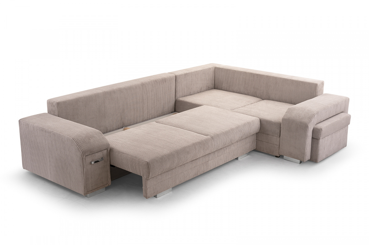 Sedací souprava Alvin v moderním designu v sobě spojuje 2 důležité prvky, které nesmí chybět žádné sedací soupravě. Jsou to pohodlí a praktičnost. Praktickou stránkou této sedací soupravy je možnost rozložení pro příležitostné přespání návštěvy a nepostradatelné úložné prostory. Úložný prostor s univerzálním využitím najdete v područi, dále v taburetu, který je možno zasunout do druhé područe a samořejmostí je i úložný prostor v sedací soupravě. Jsou dva a využijete je např. na lůžkoviny. Výplň sedáků tvoří kombinace pružin s kvalitní PUR pěnou. Tato kombinace spolu s velkými opěrnými polštáři, zajišťuje pohodlí. Sedací souprava je celočalouněná a můžete jí umístit také do prostoru. Sedací soupravu nabízíme v levém i pravém provedení a v několika oblíbených barvách i látkách.