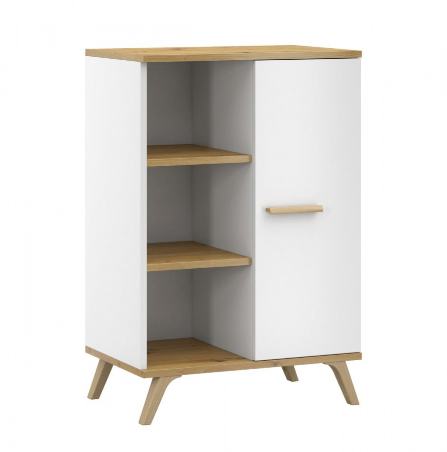 Knhovna malá Roky 2 je vyrobena z lamina v krásném dekoru bílá a dub Artisan. Lamino tloušťky 18 mm je odolné a je zakončeno lištou ABS. Jistě oceníte i snadnou údržbu. Knihovna je velmi praktická, kombinace dvířek a polic pojme vše potřebné. Rukojeti v dekóru dřeva jsou vyrobeny z plastu. Je dodávána v demontu. Součástí balení je montážní návod včetně všech spojovacích prvků.