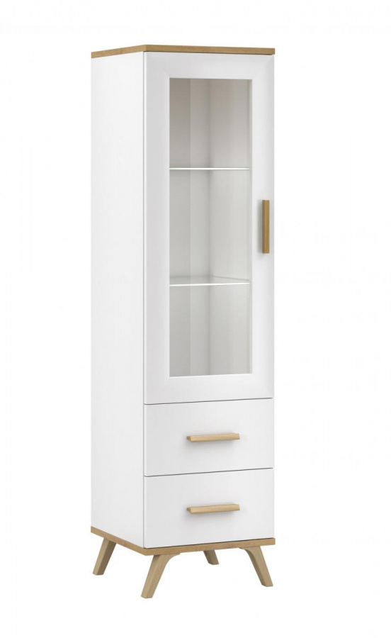 Skříň Roky 6 je vyrobena z lamina v krásném dekoru bílá a dub Artisan. Lamino tloušťky 18 mm je odolné a je zakončeno lištou ABS. Skříň pojme vše potřebné, má prosklená dvířka, za kterými jso dvě skleněné police a ve spodní části jsou také dva šuplíky. Rukojeti v dekóru dřeva jsou vyrobeny z plastu. Jistě oceníte i snadnou údržbu. Skříň je dodávána v demontu. Součástí balení je montážní návod včetně všech spojovacích prvků.