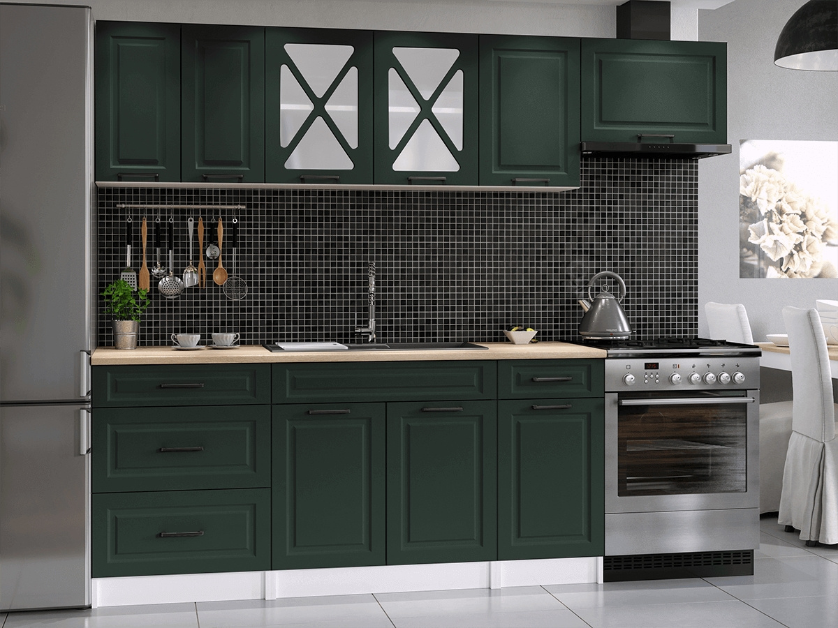 Kuchyňská linka Magda je vyrobená ve venkovském stylu, který se hodí do kuchyně v paneláku i v rodinném domě. Tento styl má jedinečnou schopnost proměnit Vaši kuchyň v útulnou a zároveň funkční místnnost, kde bude radost vařit i péct. Kuchyňská linka Magda nabízí dostatek úložného i pracovního prostoru. Všechny skříňky jsou samostatné, takže si je můžete sestavit tak, jak Vám to vyhovuje. Korpusy skříněk jsou vyrobené z lamina 18 mm s hranami ABS a dvířka jsou MDF 16mm. Všechny skříňky jsou dodávány v demontu. Součástí balení je montážní plánek včetně všech potřebných spojovacích prvků. Cena je uvedna za sestavu vyobrazenou na úvodní fotografii BEZ PRACOVNÍ DESKY, s úchytkami, které jsou vyobrazeny v doplňkových fotografiích. Pracovní desku lze dokoupit nad každou skříňku zvlášť podle její šíře. Vyobrazené spotřebiče, dřez, baterie, doplňky a dekorace nejsou v ceně. Kuchyň bude dodaná s bílými korpusy a dvířky ve tmavě zelené barvě. Zobrazení barev na fotografii se může od skutečnosti lišit.