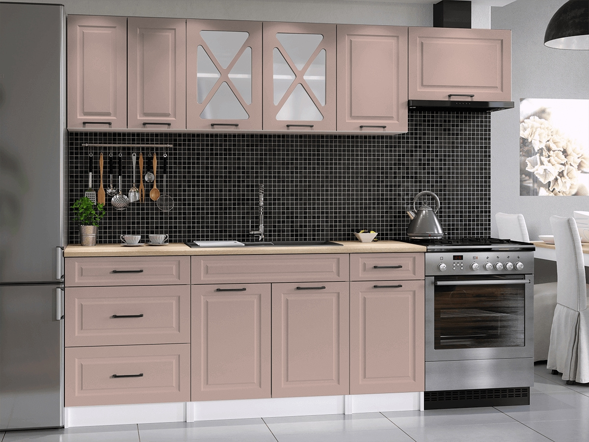 Kuchyňská linka Magda je vyrobená ve venkovském stylu, který se hodí do kuchyně v paneláku i v rodinném domě. Tento styl má jedinečnou schopnost proměnit Vaši kuchyň v útulnou a zároveň funkční místnnost, kde bude radost vařit i péct. Kuchyňská linka Magda nabízí dostatek úložného i pracovního prostoru. Všechny skříňky jsou samostatné, takže si je můžete sestavit tak, jak Vám to vyhovuje. Korpusy skříněk jsou vyrobené z lamina 18 mm s hranami ABS a dvířka jsou MDF 16mm. Všechny skříňky jsou dodávány v demontu. Součástí balení je montážní plánek včetně všech potřebných spojovacích prvků. Cena je uvedna za sestavu vyobrazenou na úvodní fotografii BEZ PRACOVNÍ DESKY, s úchytkami, které jsou vyobrazeny v doplňkových fotografiích. Pracovní desku lze dokoupit nad každou skříňku zvlášť podle její šíře. Vyobrazené spotřebiče, dřez, baterie, doplňky a dekorace nejsou v ceně. Kuchyň bude dodaná s bílými korpusy a dvířky v růžové barvě. Zobrazení barev na fotografii se může od skutečnosti lišit.