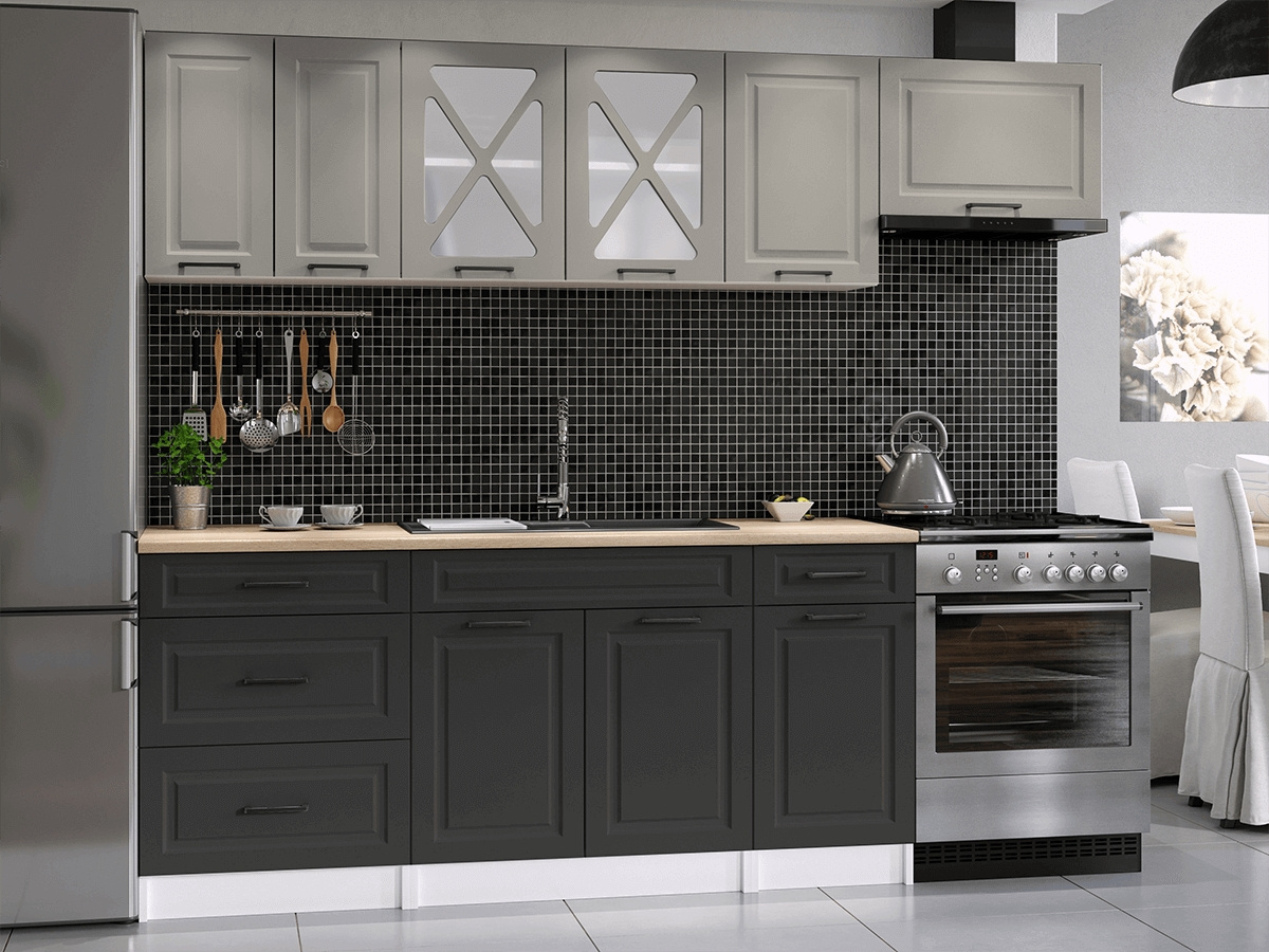 Kuchyňská linka Magda je vyrobená ve venkovském stylu, který se hodí do kuchyně v paneláku i v rodinném domě. Tento styl má jedinečnou schopnost proměnit Vaši kuchyň v útulnou a zároveň funkční místnnost, kde bude radost vařit i péct. Kuchyňská linka Magda nabízí dostatek úložného i pracovního prostoru. Všechny skříňky jsou samostatné, takže si je můžete sestavit tak, jak Vám to vyhovuje. Korpusy skříněk jsou vyrobené z lamina 18 mm s hranami ABS a dvířka jsou MDF 16mm. Všechny skříňky jsou dodávány v demontu. Součástí balení je montážní plánek včetně všech potřebných spojovacích prvků. Cena je uvedna za sestavu vyobrazenou na úvodní fotografii BEZ PRACOVNÍ DESKY, s úchytkami, které jsou vyobrazeny v doplňkových fotografiích. Pracovní desku lze dokoupit nad každou skříňku zvlášť podle její šíře. Vyobrazené spotřebiče, dřez, baterie, doplňky a dekorace nejsou v ceně. Kuchyň bude dodaná s bílými korpusy a dvířky v odstínu kámen a grafit. Zobrazení barev na fotografii se může od skutečnosti lišit.
