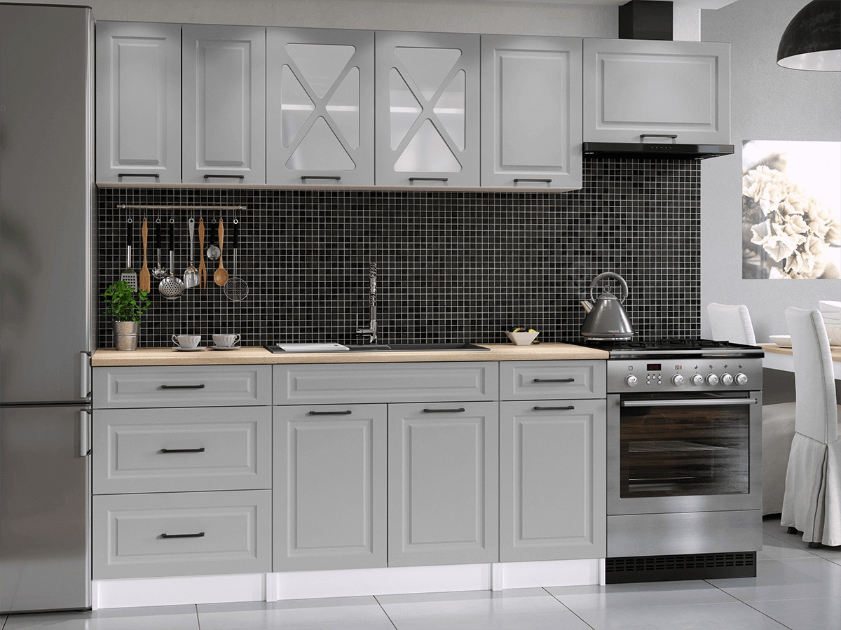 Kuchyňská linka Magda je vyrobená ve venkovském stylu, který se hodí do kuchyně v paneláku i v rodinném domě. Tento styl má jedinečnou schopnost proměnit Vaši kuchyň v útulnou a zároveň funkční místnnost, kde bude radost vařit i péct. Kuchyňská linka Magda nabízí dostatek úložného i pracovního prostoru. Všechny skříňky jsou samostatné, takže si je můžete sestavit tak, jak Vám to vyhovuje. Korpusy skříněk jsou vyrobené z lamina 18 mm s hranami ABS a dvířka jsou MDF 16mm. Všechny skříňky jsou dodávány v demontu. Součástí balení je montážní plánek včetně všech potřebných spojovacích prvků. Cena je uvedna za sestavu vyobrazenou na úvodní fotografii BEZ PRACOVNÍ DESKY, s úchytkami, které jsou vyobrazeny v doplňkových fotografiích. Pracovní desku lze dokoupit nad každou skříňku zvlášť podle její šíře. Vyobrazené spotřebiče, dřez, baterie, doplňky a dekorace nejsou v ceně. Kuchyň bude dodaná s bílými korpusy a dvířky v šedé/popel barvě. Správný odstín šedé barvy je zobrazen v doplňkové fotografii. Zobrazení barev na fotografii se může od skutečnosti lišit.