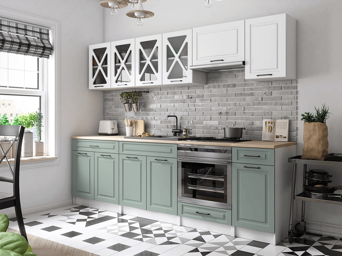 Kuchyňská linka Gréta 260/260 bílá/sv.zelená MAT