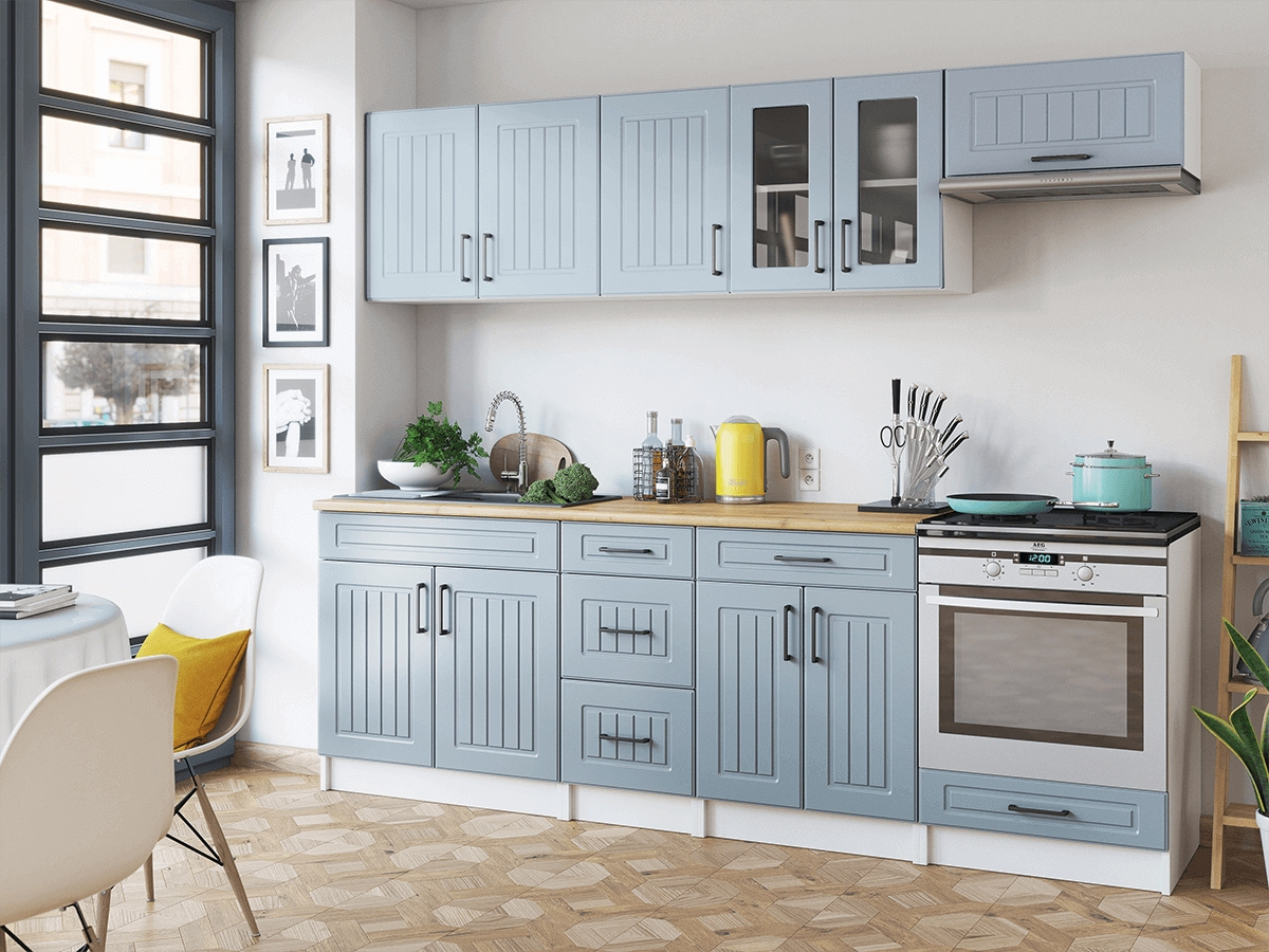 Kuchyňská linka Běla je vyrobená ve velmi oblíbeném venkovském stylu, který se hodí do kuchyně v paneláku i v rodinném domě. Tento styl má jedinečnou schopnost proměnit Vaši kuchyň v útulnou a zároveň funkční místnost, kde bude radost vařit i péct. Kuchyňská linka Běla nabízí dostatek úložného i pracovního prostoru. Všechny skříňky jsou samostatné, takže si je můžete sestavit tak, jak Vám to vyhovuje. Korpusy skříněk jsou vyrobené z lamina 18 mm s hranami ABS a dvířka jsou MDF 16mm. Všechny skříňky jsou dodávány v demontu. Součástí balení je montážní plánek včetně všech potřebných spojovacích materiálů. Cena je uvedena za sestavu vyobrazenou na úvodní fotografii BEZ PRACOVNÍ DESKY, s úchytkami, které jsou vyobrazeny v doplňkových fotografiích. Pracovní desku lze dokoupit nad každou skříňku zvlášť podle její šíře. Vyobrazené spotřebiče, dřez, baterie, doplňky a dekorace nejsou v ceně. Zobrazení barev na fotografii se může od skutečnosti lišit.