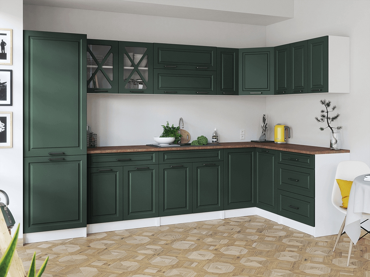 Rohová kuchyňská linka Simea tmavě zelená MAT